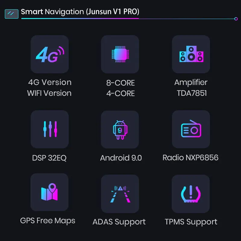 > 9 дюймов 2.5D емкостный Экран + 4 ядра 1,2 ГГц Процессор + DDR3 1 ГБ/2 ГБ/4 ГБ флэш-памяти (опционально) + 16 Гб/32 ГБ/64 Гб памяти (опционально) + встроенный Wifi (4G опционально) + gps-навигация (карта Бесплатное обновление) + управление рулевым колесом + зеркальная связь + Bluetooth-Совместимость + Встроенный микрофон + FM/AM + RDS + Поддержка USB DVR ADAS + Поддержка Европейской DAB функции + 1080P видео воспроизведение + HD 1024*600 + Поддержка системы контроля давления в шинах + Поддержка голоса Управление > Быстрая доставка из Китая, России, Испании или Польши со склада в течение 2 дней и бесплатный возврат в течение 15 дней. > 7*24 часов обслуживанияВ Awesafe наша миссия упорно работает, чтобы предоставить вам надежный и замечательный Автомобильный мультимедийный плеер/автомобильное радио, инновационное оборудование и программное обеспечение, а также бесплатные обновления для прошивки, программного обеспечения, GPS навигационные карты.