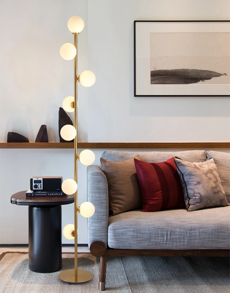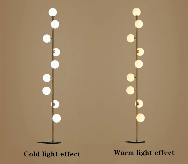 Напольная Светодиодная лампа в скандинавском стиле с несколькими насадками, золотистый светильник для гостиной, спальни, прикроватного столика, углового стеклянного шара, лампа детской яркости