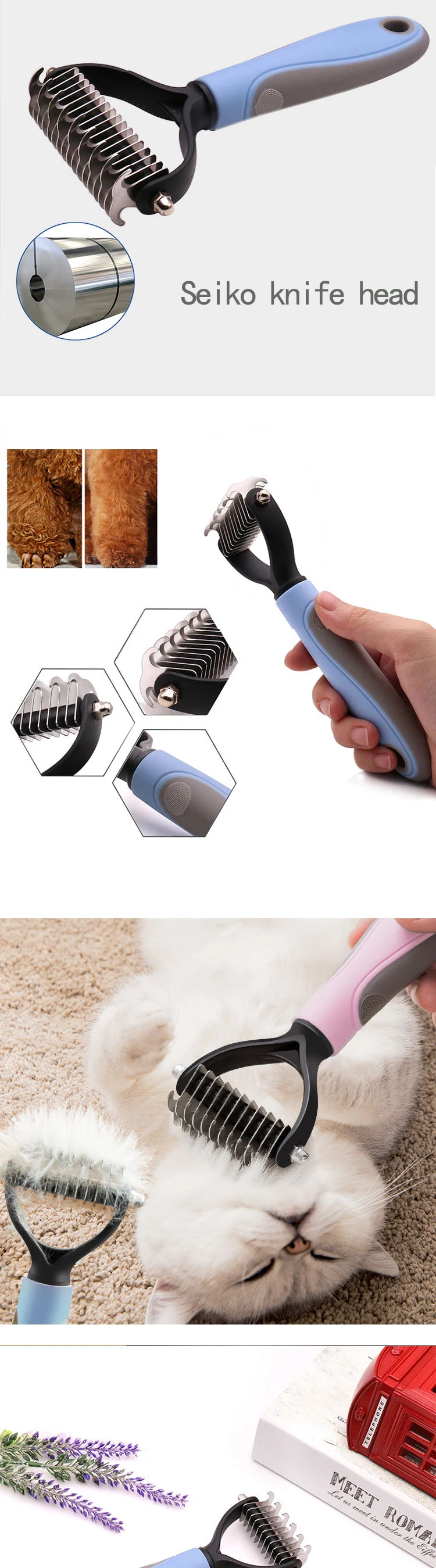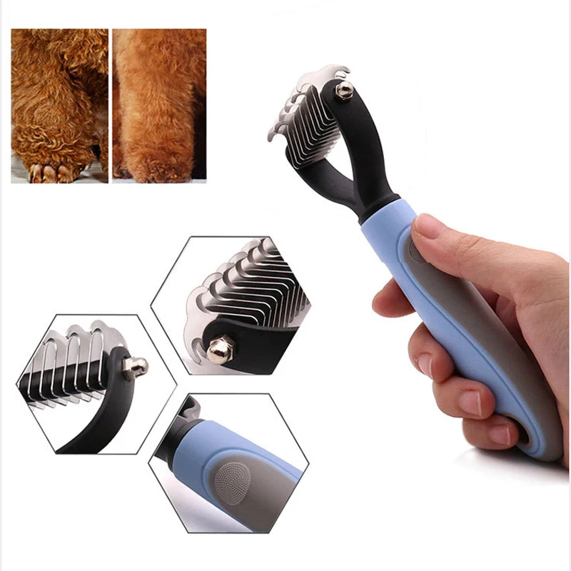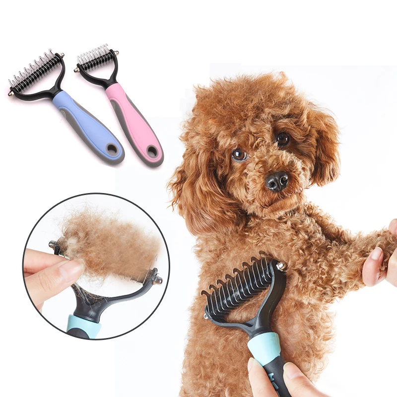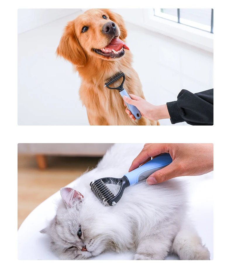 Щетка для груминга домашних животных, двухсторонняя расческа для вычесывания шерсти у собак и кошек