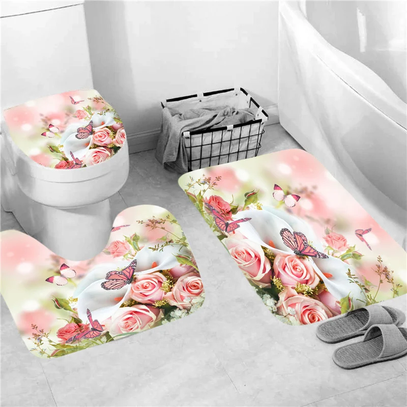 Размер: коврик/крышка для унитаза/коврик для ванной: 45x36 см/43x34 см/74x45 см занавеска для душа: 180x180 см + 12 крючков