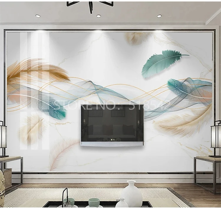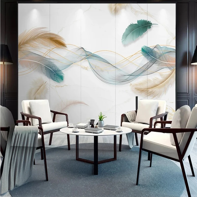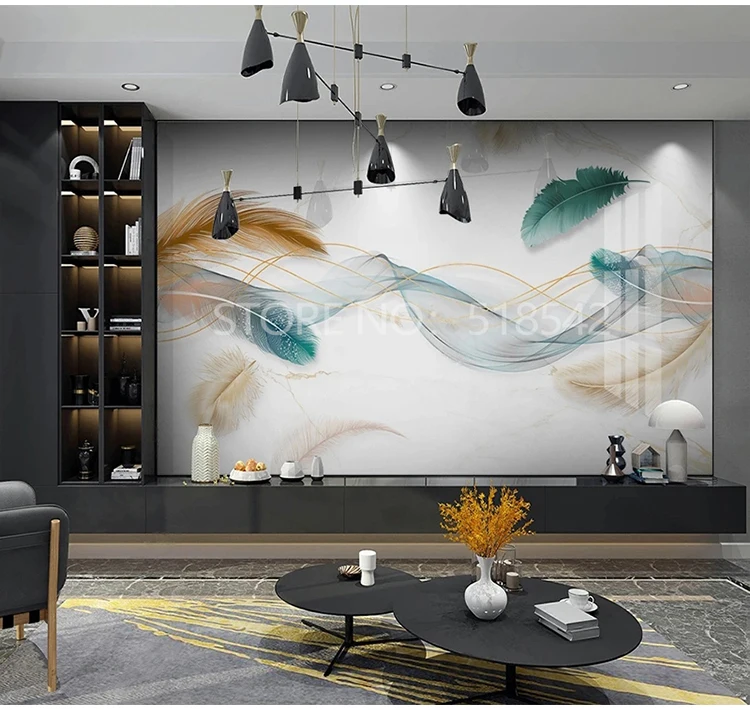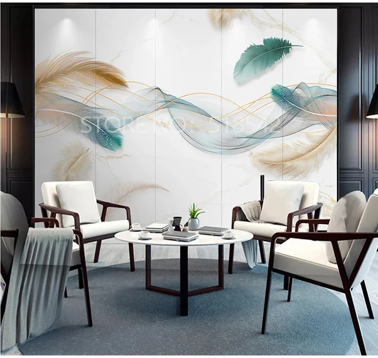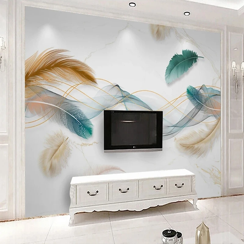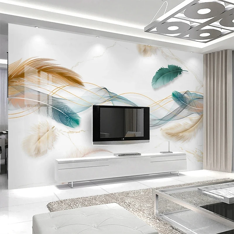 Настенная 3D Роспись на заказ, белая синяя перо, абстрактные линии, настенная живопись, современное искусство для гостиной, настенные украшения, настенная бумага
