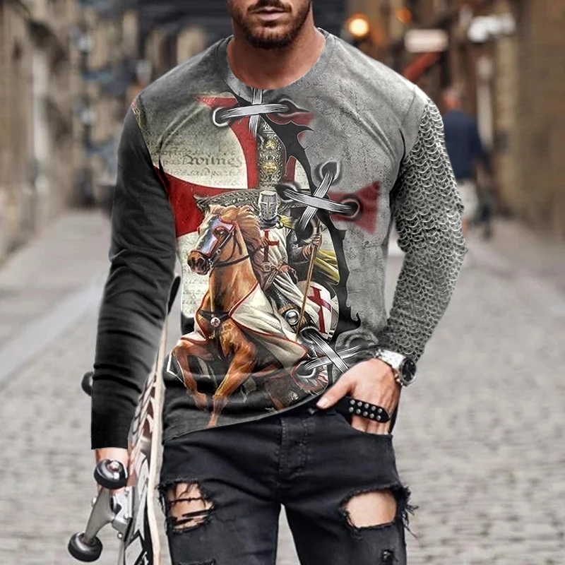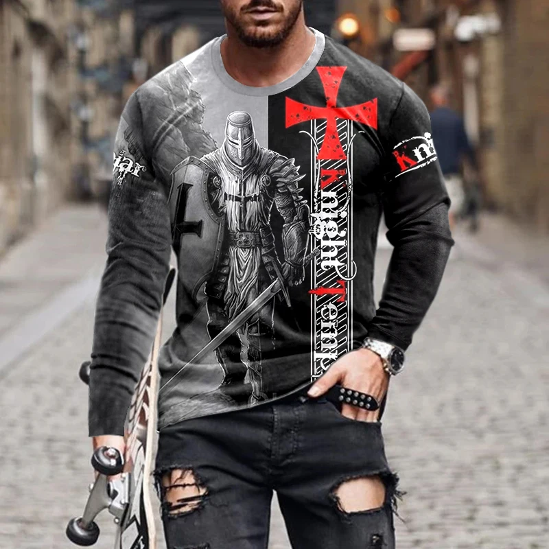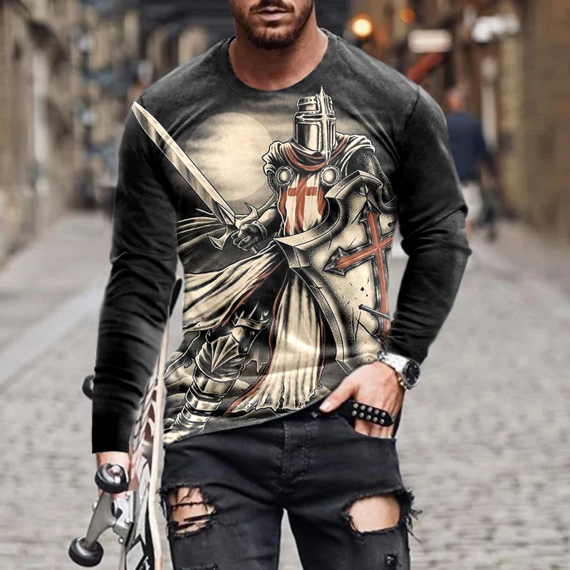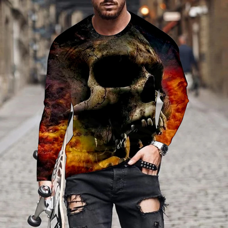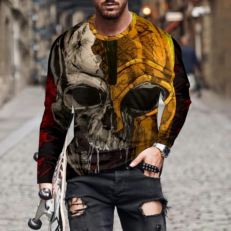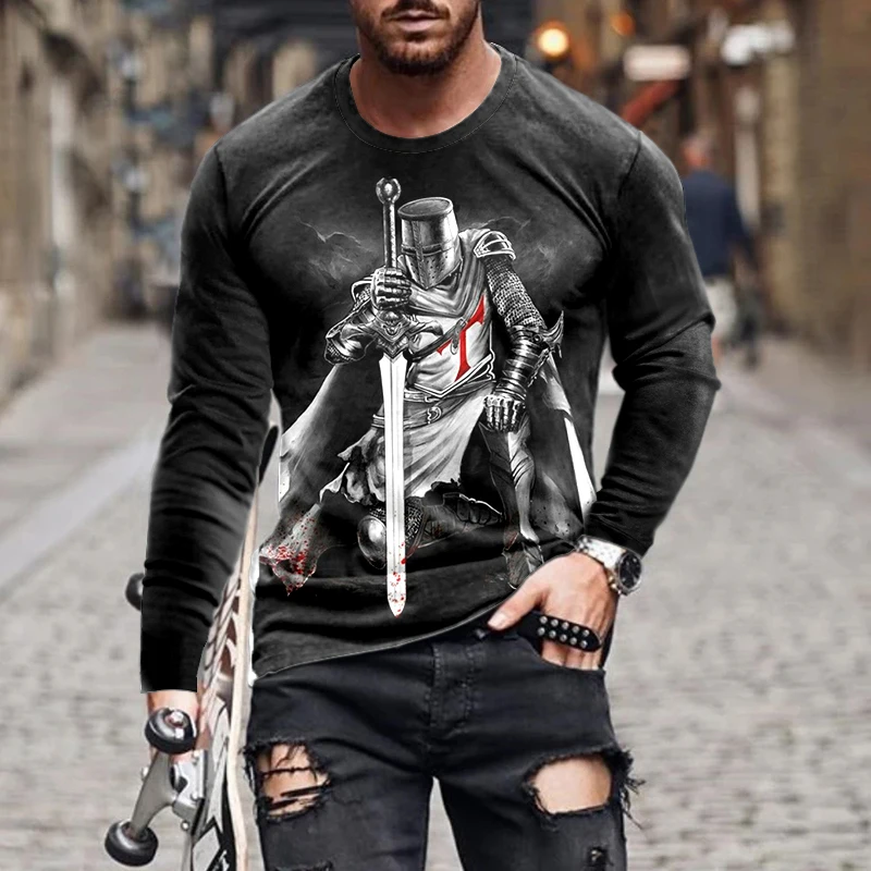 Европейская и американская популярная мужская повседневная футболка с 3D Цифровым принтом и длинным рукавом, модная трендовая футболка с 3D принтом