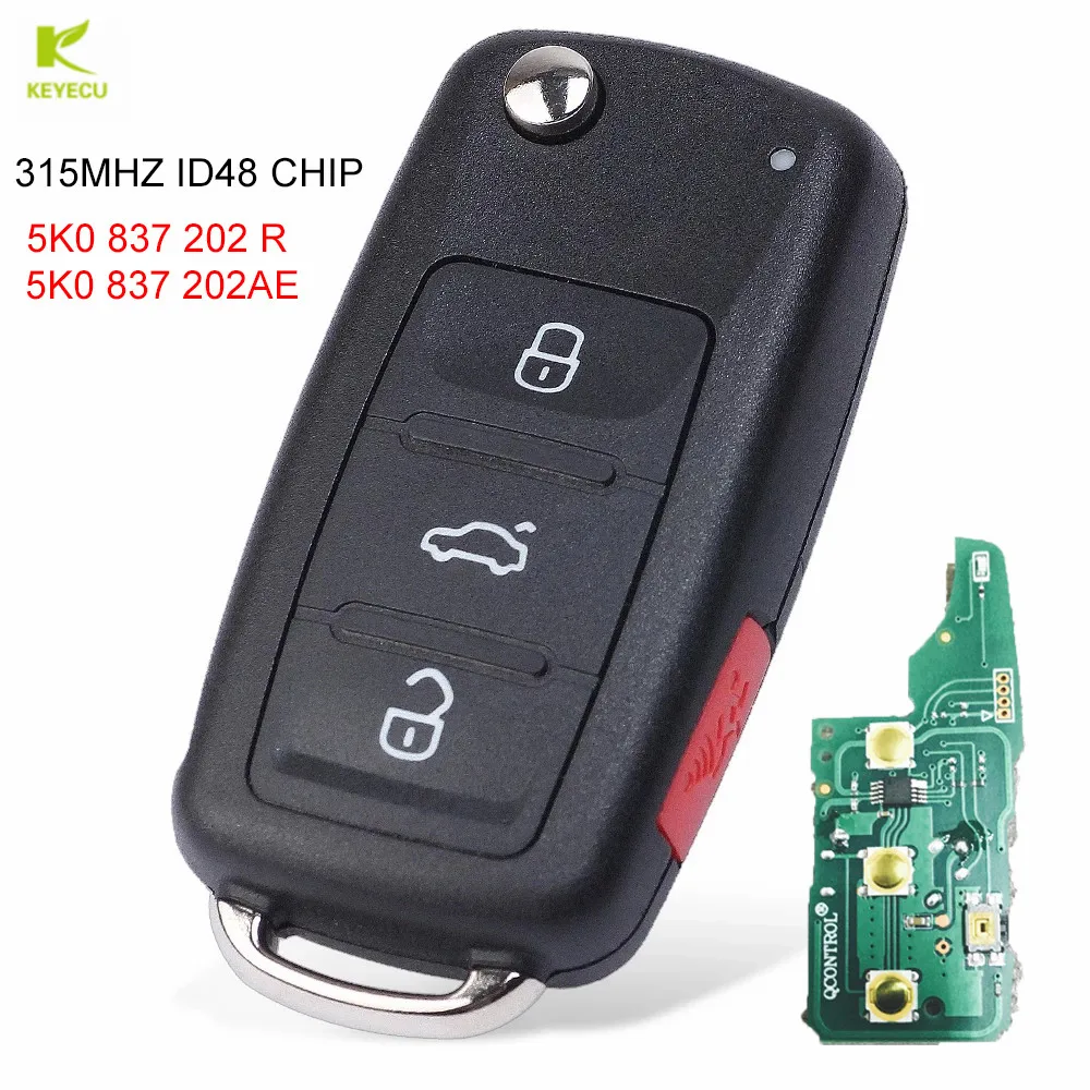 KEYECU 3 + 1 4 кнопки 5K0837202R NBG010180T 315 МГц ID48 для Volksw...