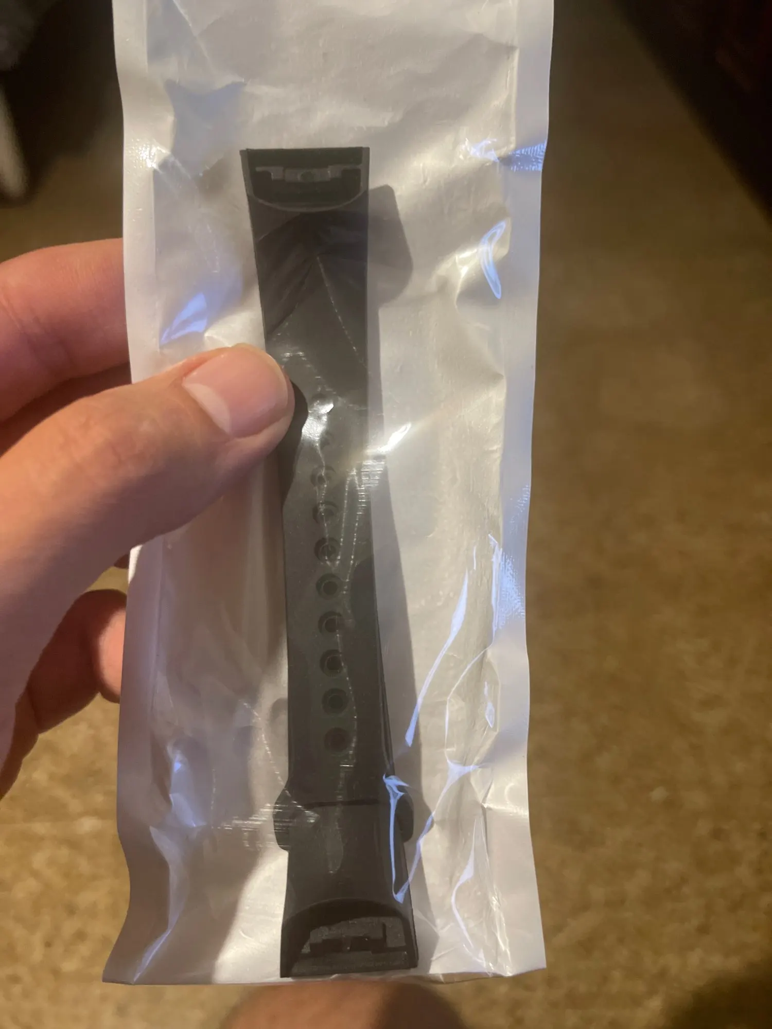 Как и в объявлении, он идеально подходит к часам, пластик немного менее гибкий, но отлично выполняет свою функцию.
