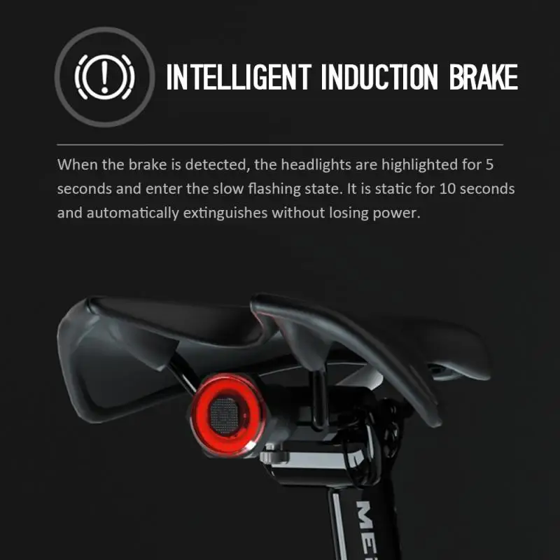 Велосипедный задний фонарь, светодиодный водонепроницаемый Интеллектуальный стоп-светильник с Индукционным датчиком, зарядкой через USB, автоматический старт, стоп-сигнал, 100 люмен