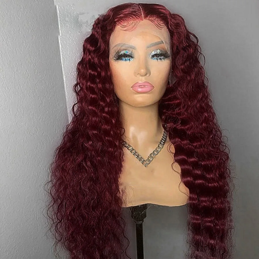 Бордовый длинный кудрявый синтетический кружевной передний парик 99j 26 дюймов для чернокожих женщин с намотанными волосами для косплея глубокий волнистый парик