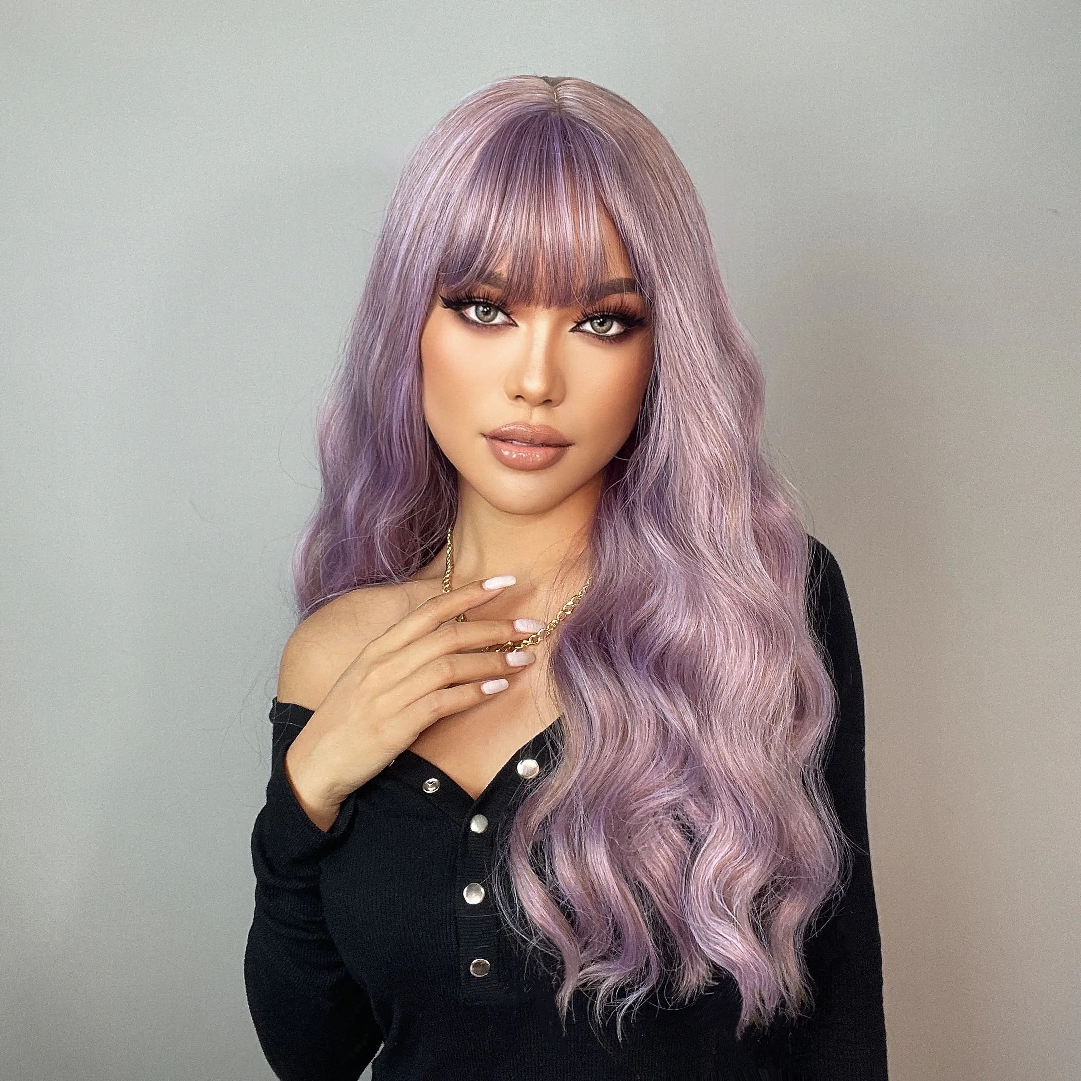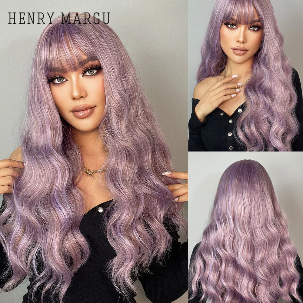 Длинные волнистые синтетические парики с челкой henmargu, парики для косплея Лолиты, вечерние парики для женщин, лиловые, фиолетовые, коричневые, афро-парики из натуральных волос