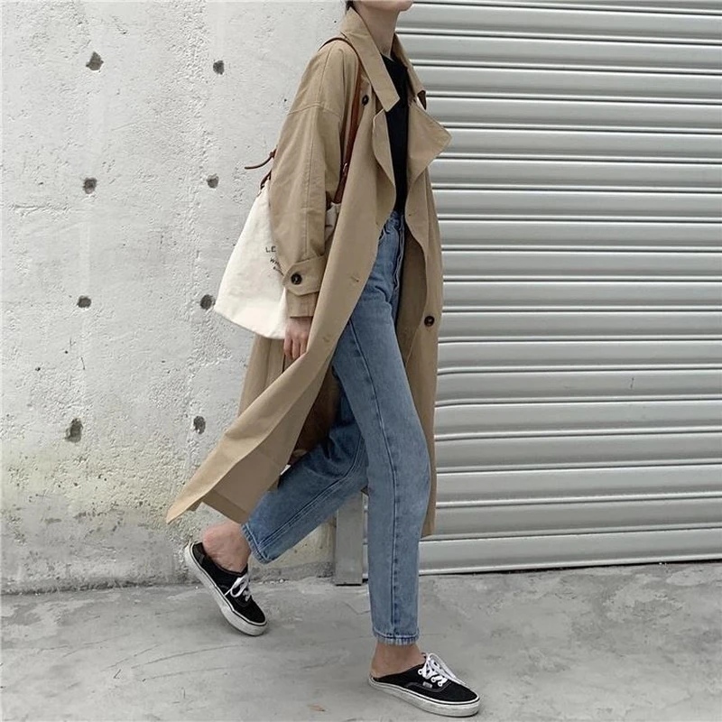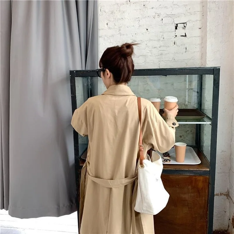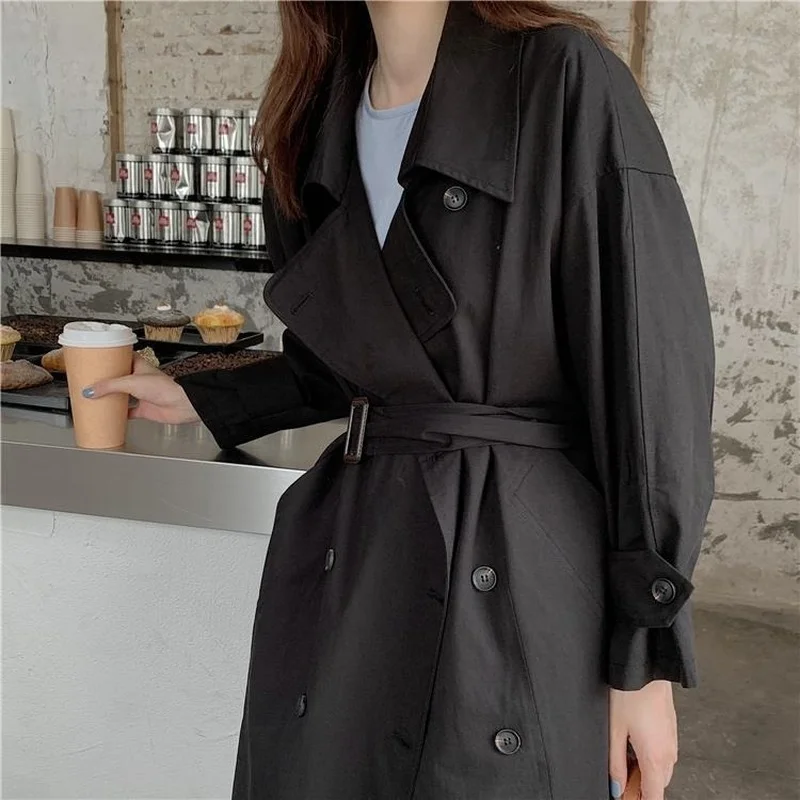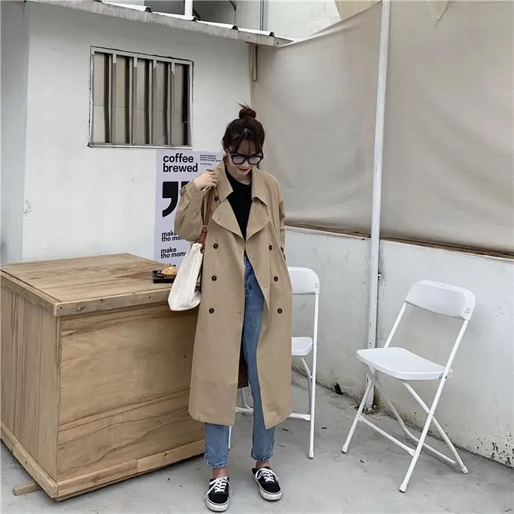 Тренч Женский базовый двубортный с V-образным вырезом, модная Элегантная Повседневная ветровка свободного покроя в Корейском стиле, весна-осень
