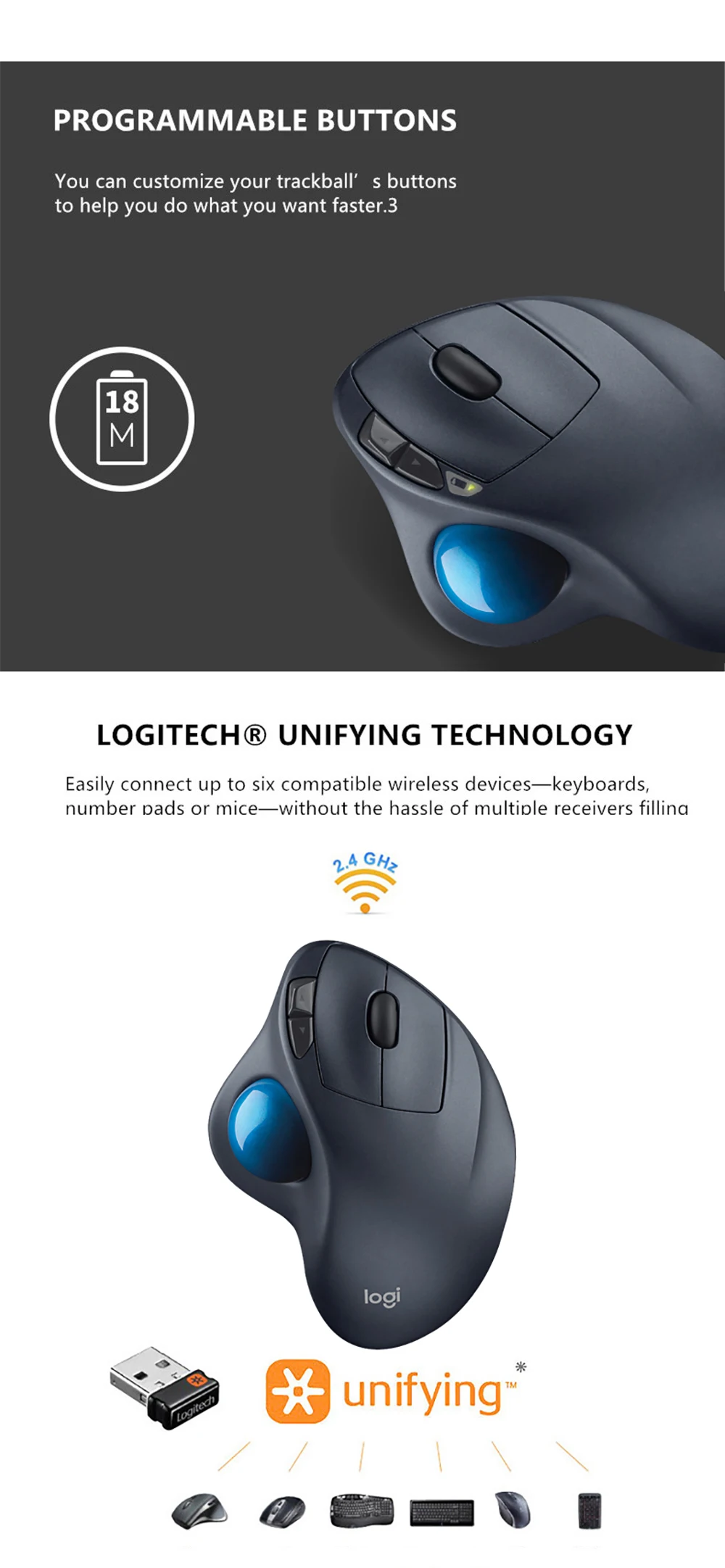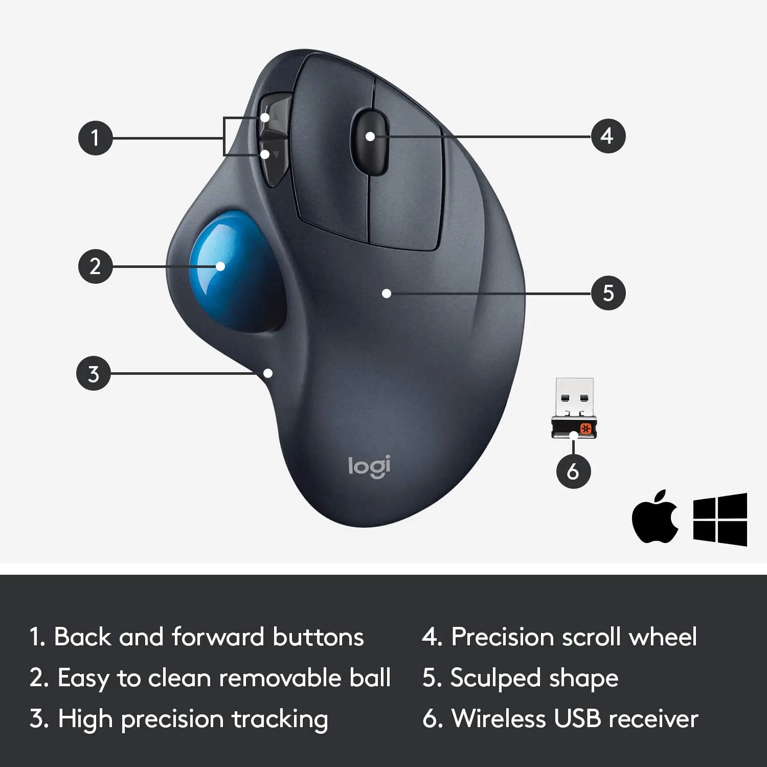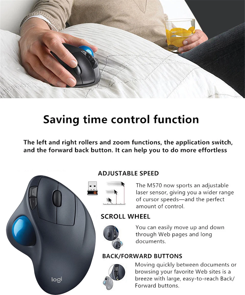 Новая беспроводная эргономичная мышь M575 с функцией трекбол и правой рукой, совместима с Apple Mac и windows