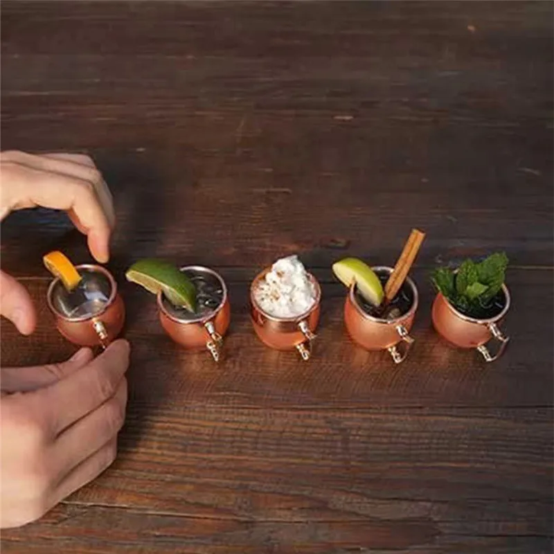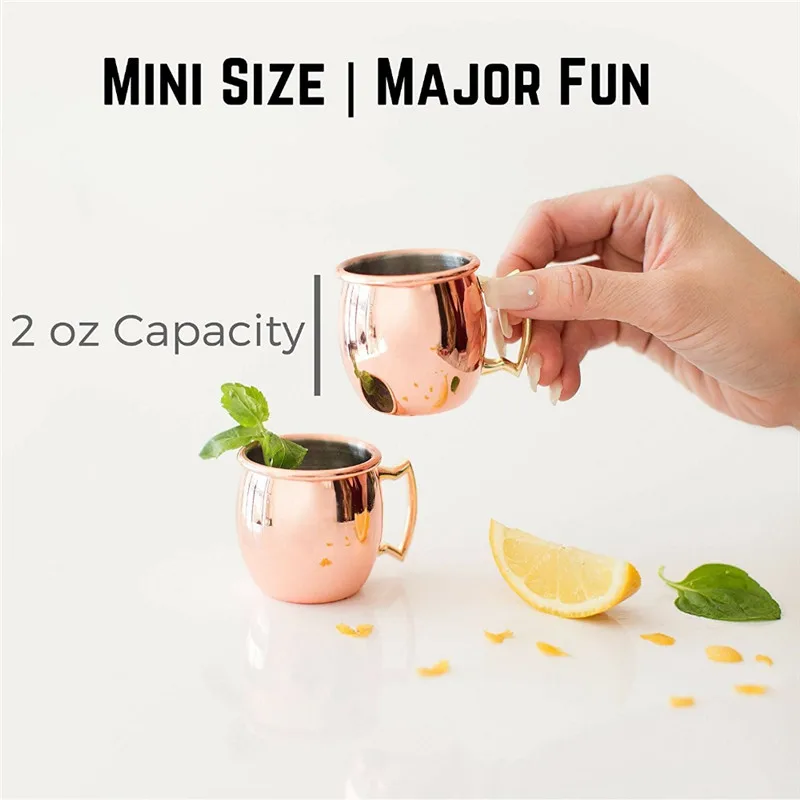 Прочная конструкция из нержавеющей стали с никелевой подкладкой и твердыми латунными акцентамиПотускневное лаковое покрытие Сохраняет красоту и блескНе для микроволновой печиПротрите теплой влажной тканью и высушитеЕмкость: 60 млВысота: 4,5 смДиаметр: 4,5 смВес нетто: 35 гМини-размер, основные вечерние: подавайте удовольствие с этим бокалом 2 унции (60 мл) идеально подходит для эспрессо, охлажденных снимков, коктейлей и десертов.Безопасно для всех напитковИдеальный подарок-мини-кружки для московского Мула являются уникальным и забавная игрушка подарок для подружек невесты, жениха, или весь Свадебная вечеринка