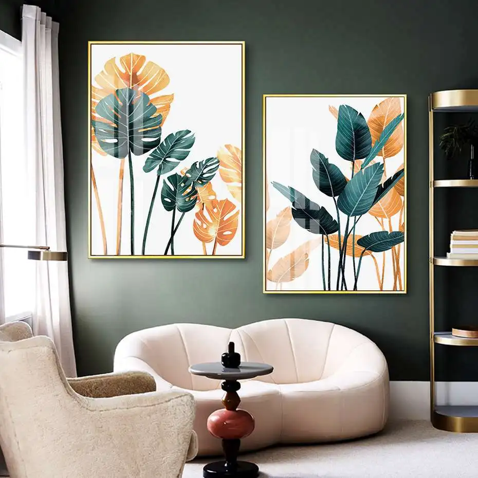 Скандинавские тропические растения листья печатает плакат минималистский Золотой Зеленый Холст Картина Настенная живопись для гостиной столовой без рамки