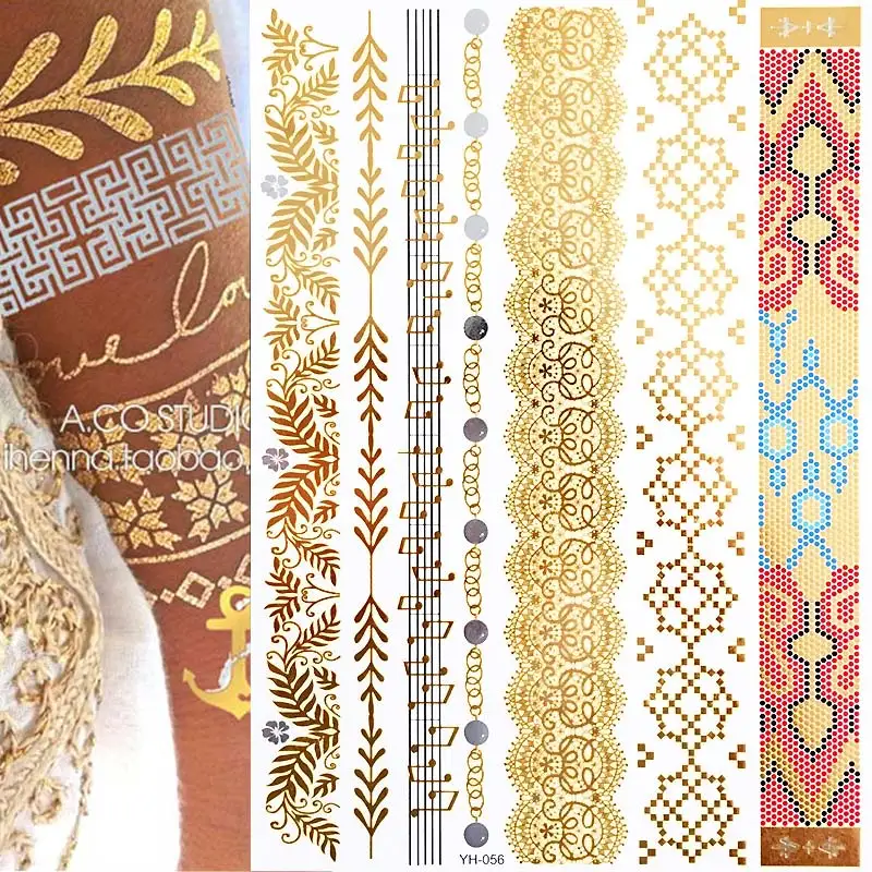 1 лист блестящих металлических золотых перьев в стиле бохо, блестящие ювелирные украшения, праздничная временная татуировка