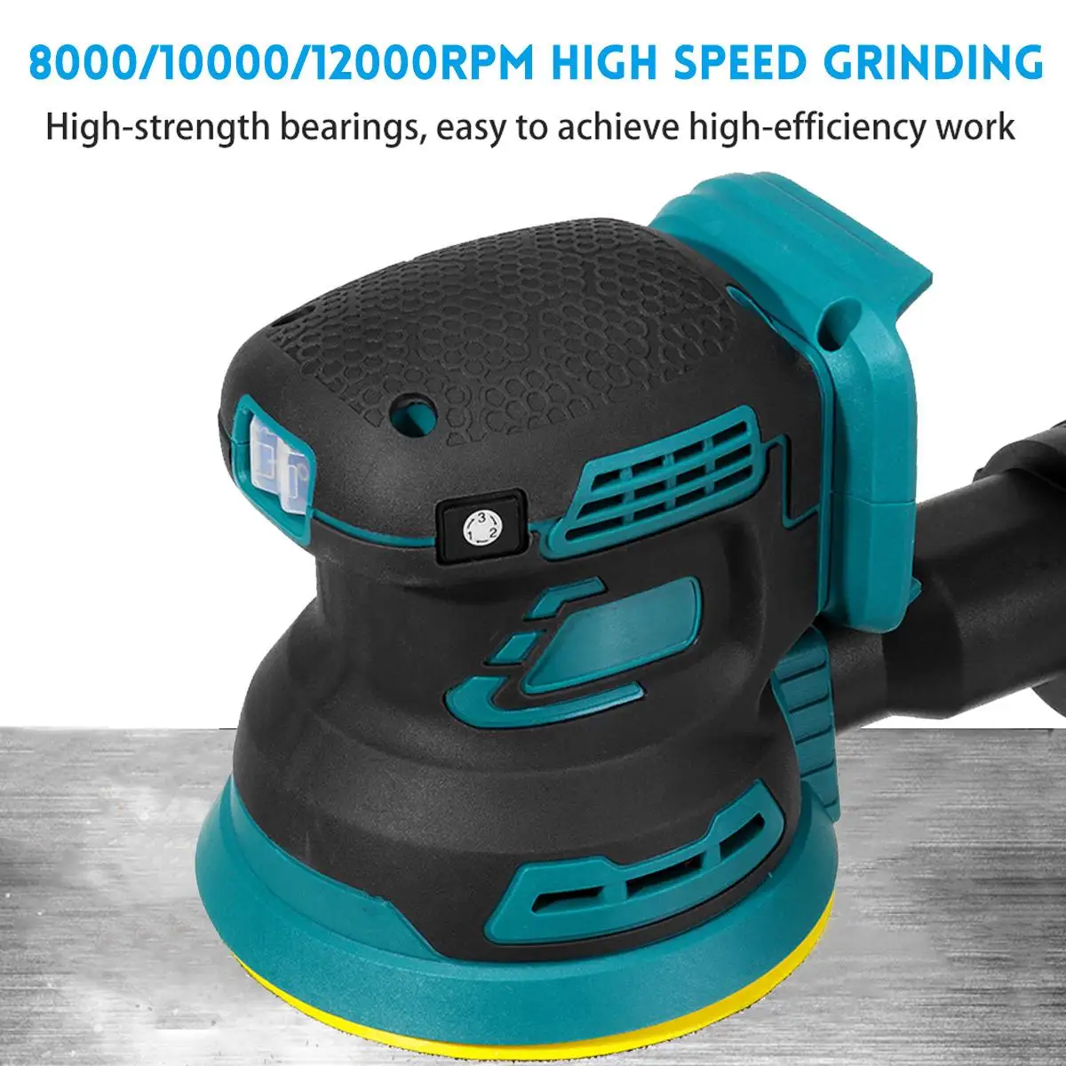 Технические характеристикиПодходит для Makita 18V аккумуляторная батареяЦвет: синий + черныйТрехскоростная Регулируемая скорость: 8000/10000/12000 об/минРазмер: 125 ммНаждачная бумага: 120, 150180 сеткаПредложение по емкости аккумулятора: 2.0AH - 5.0AH