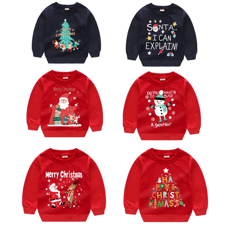 ЗимняяОсенняя теплая Красная рождественская одежда для маленьких девочек, Рождественская Толстовка с рисунком снеговика, детская одежда Санта-Клауса для мальчиков