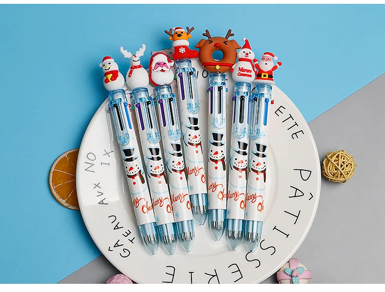 Kawaii Милая Рождественская шариковая 6 разноцветных ручек, красочная заправка, школьные канцелярские принадлежности, рождественский подарок для детей, школьников
