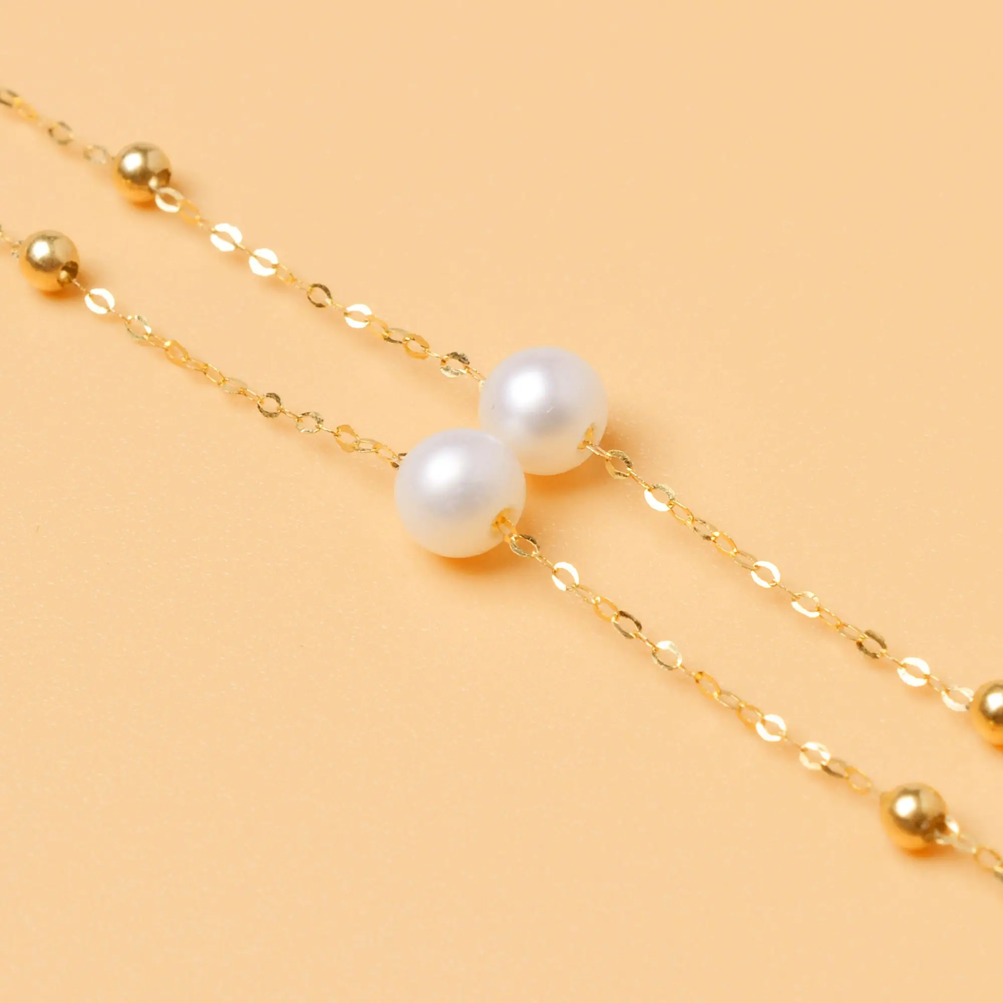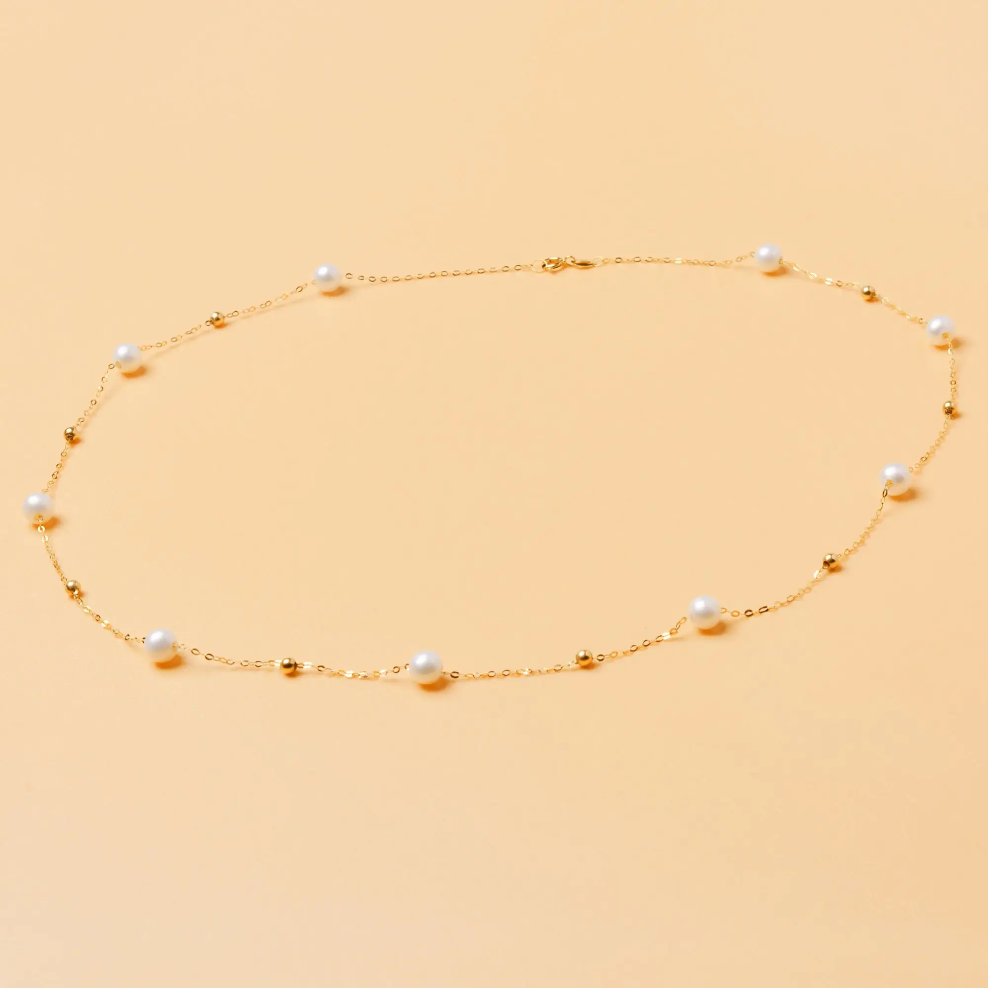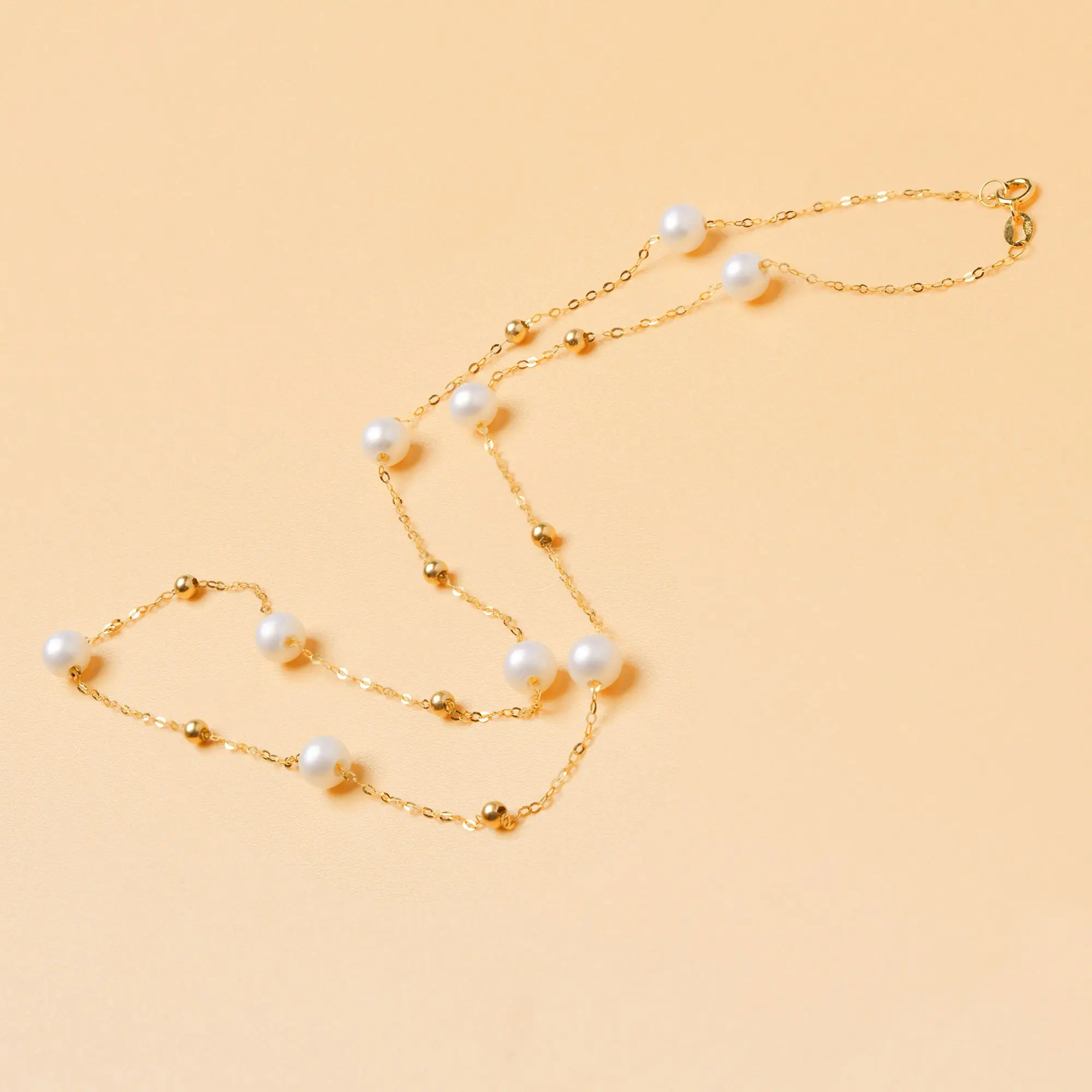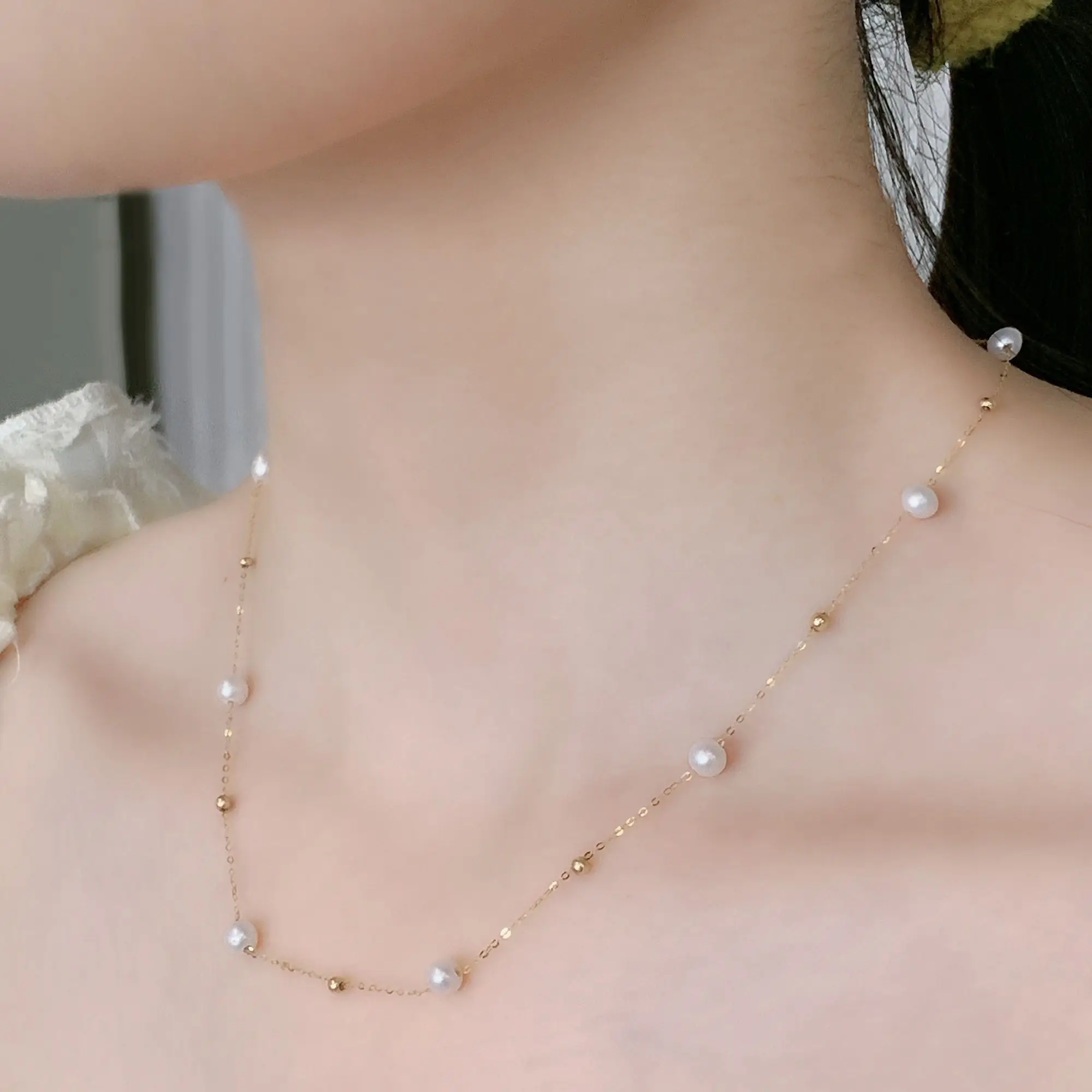 NYMPH Настоящее натуральное пресноводное Жемчужное ожерелье 18 К Золотое твердое маленькое Золотое ювелирное изделие AU750 для женщин прекрасный подарок