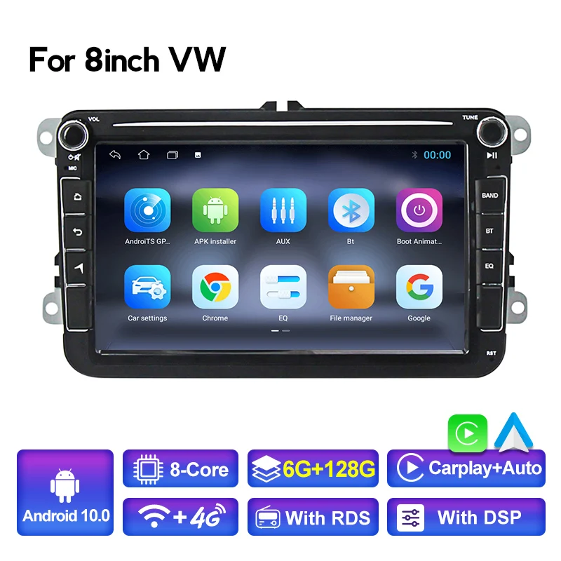 2 Din Carplay Auto 6G 128G Android 10 Автомобильный радиоплеер GPS Навигация Для VWVolkswagenGolfPoloPassatb7b6SEATleonSkoda