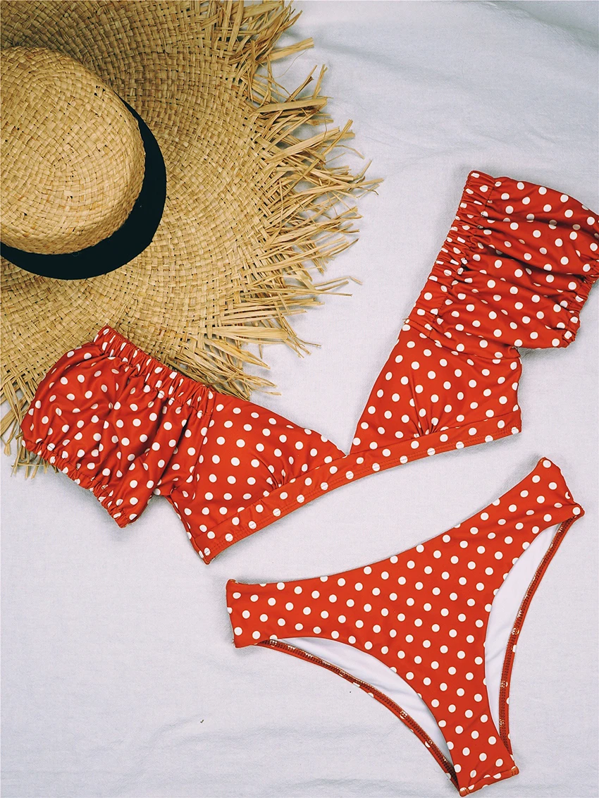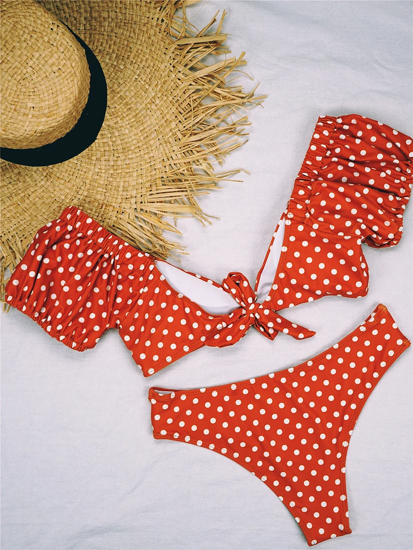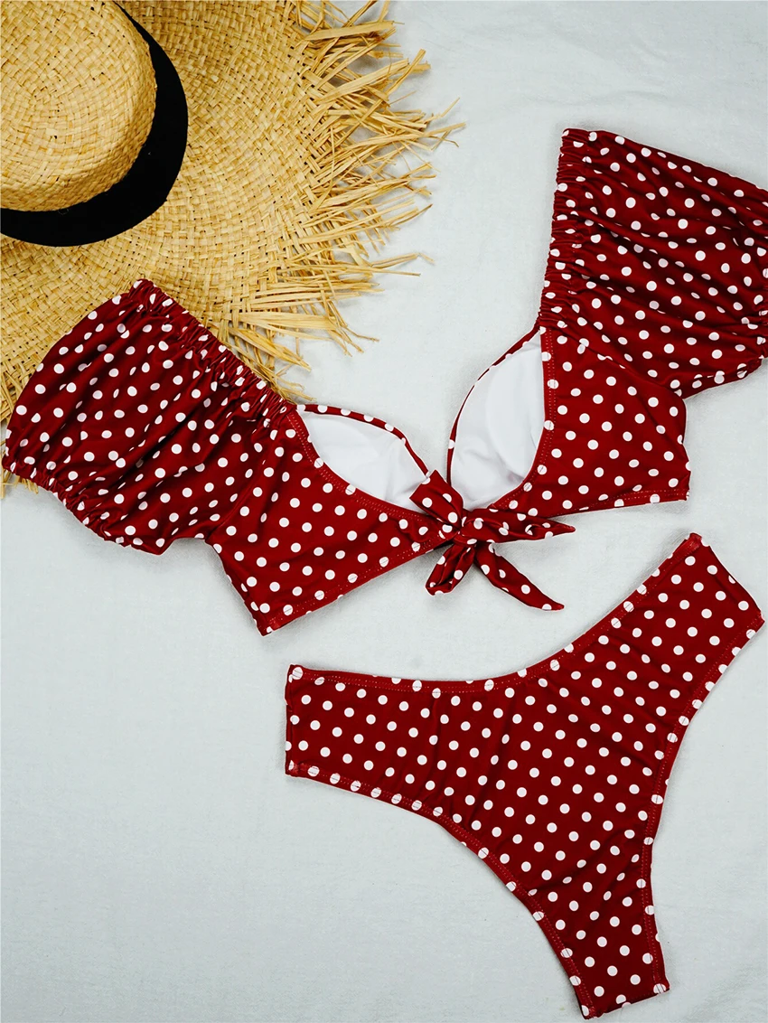 Женский комплект бикини в горошек, с пышными рукавами и глубоким V-образным вырезом