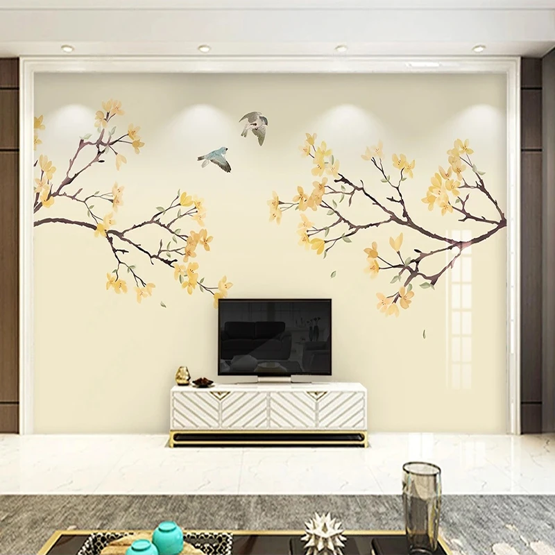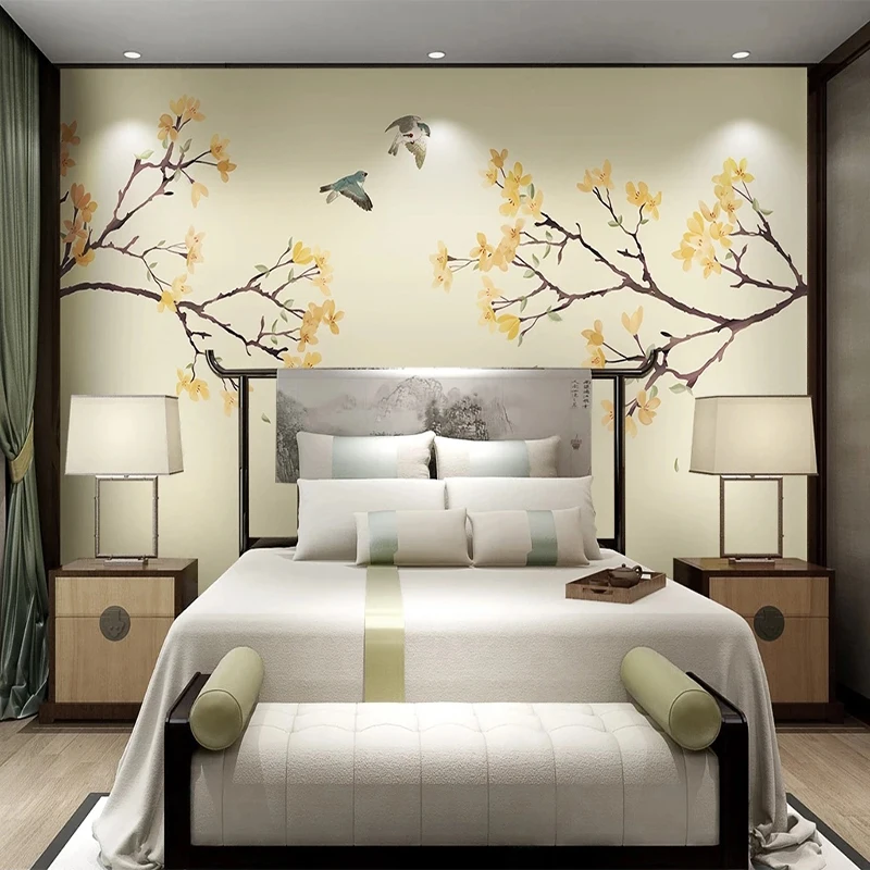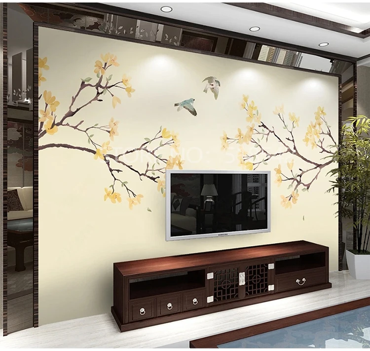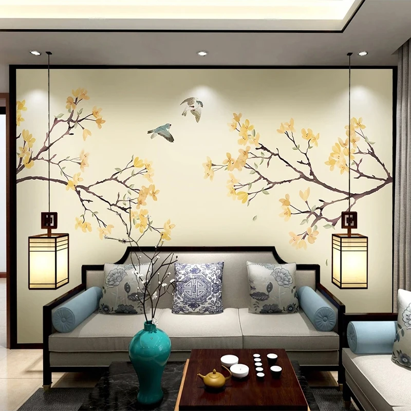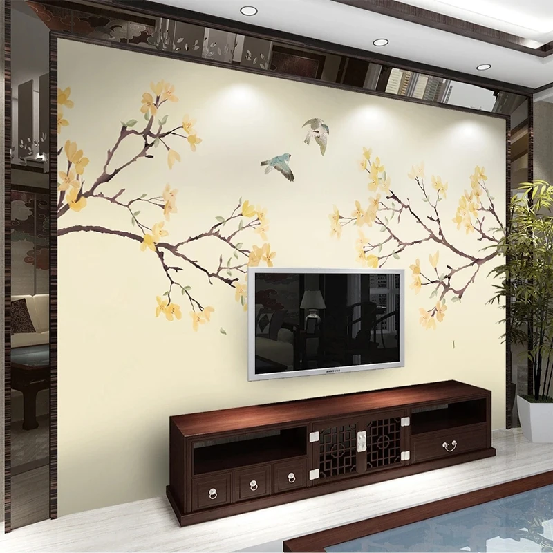 3D Роспись на заказ в китайском стиле ручная роспись цветы и птицы Настенная бумага для гостиной домашний декор настенная бумага Papel De Parede