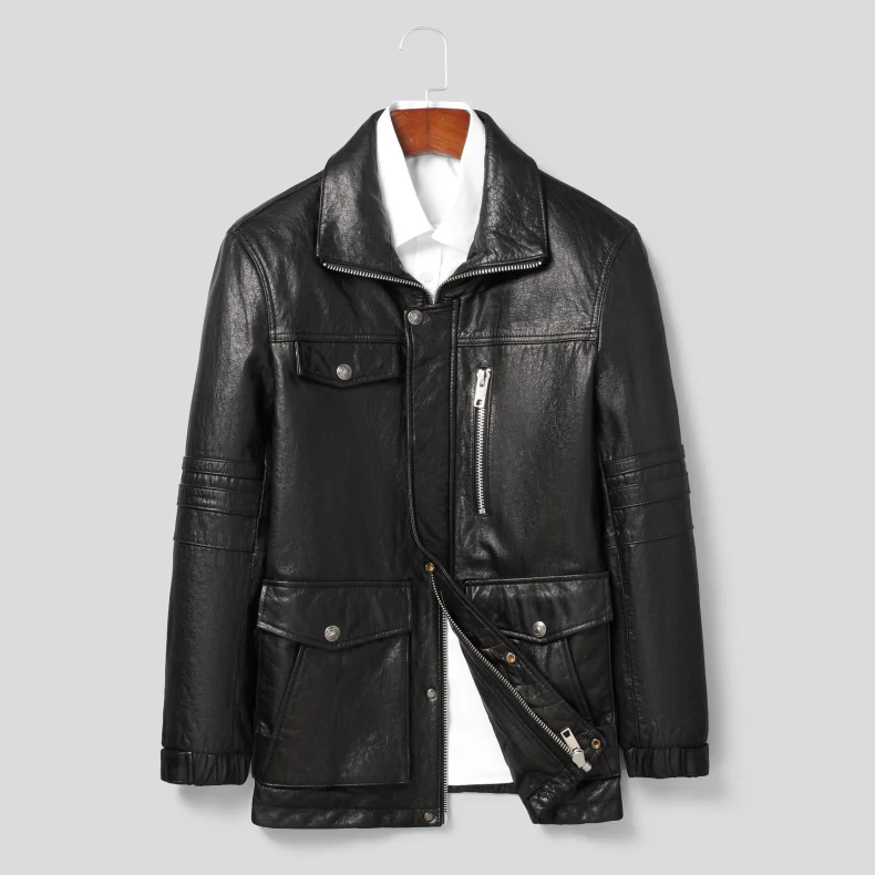 Мужская куртка из натуральной кожи, Куртки из натуральной овечьей кожи, повседневные короткие черные карманы, Новинка осени для мужчин N5008