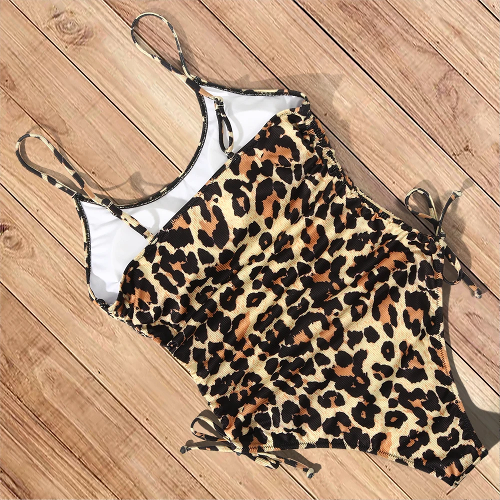 Женский купальник с пуш-ап, 2022, сдельный Купальник для женщин, пуш-ап, цельный костюм, на шнуровке, пляжная одежда, бикини, с вырезами, купальник, монокини, 2022, Леопардовый купальник для женщин