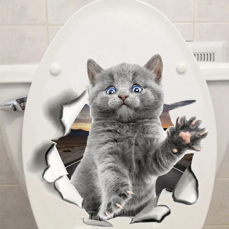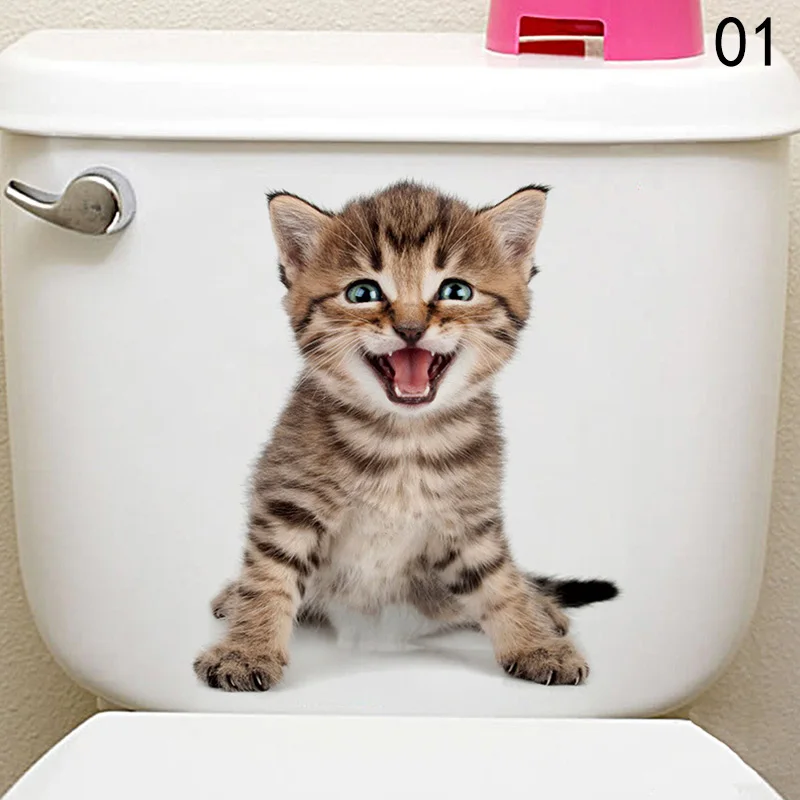 Наклейки на унитаз, 3D кошка, яркая Наклейка на стену, 2021, модная красивая ПВХ водонепроницаемая наклейка с животными для ванной, туалета, декоративная наклейка