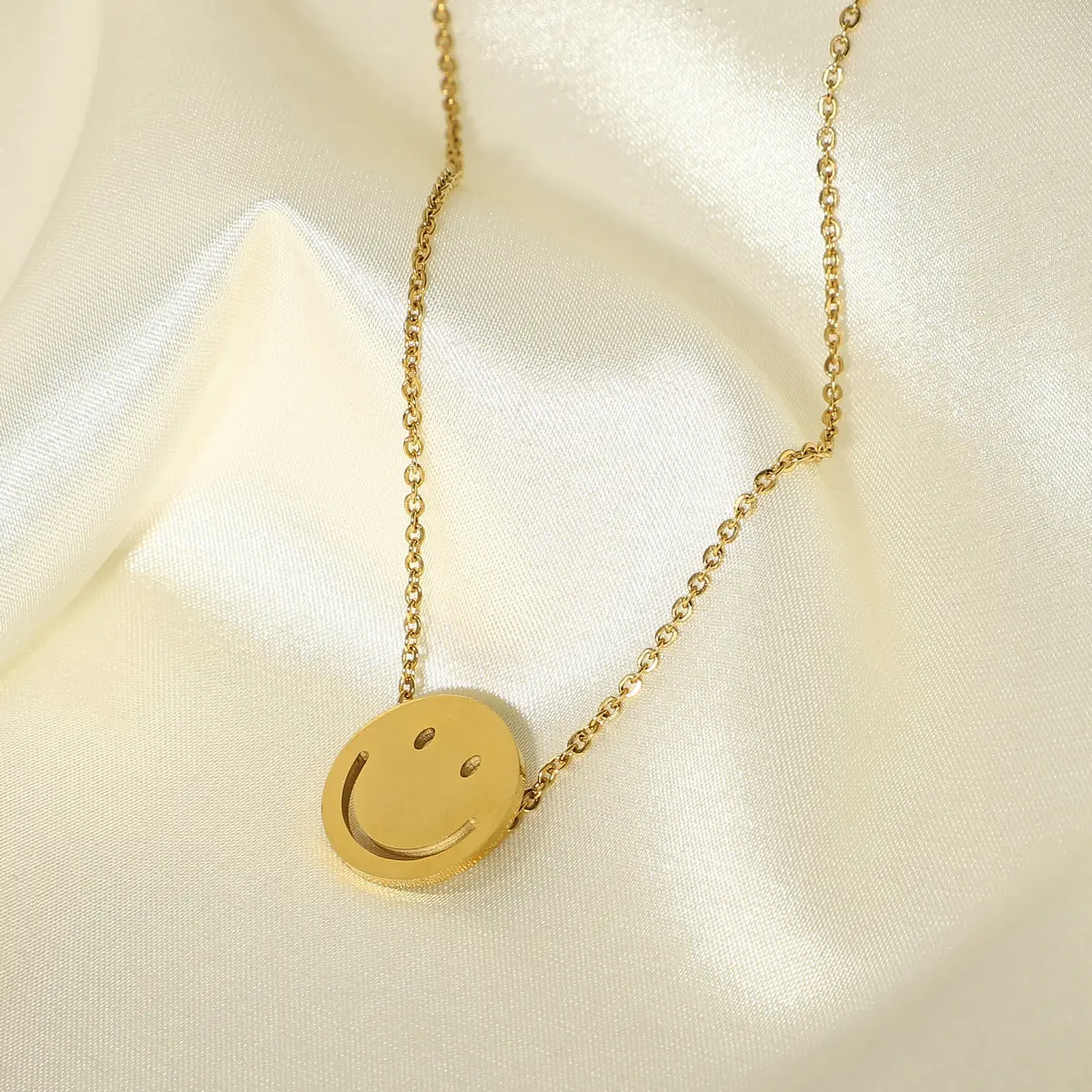 Круглое ожерелье с подвеской в виде смайлика, ожерелье из нержавеющей стали 316L, цепочка, уличная мода, бижутерия для женщин