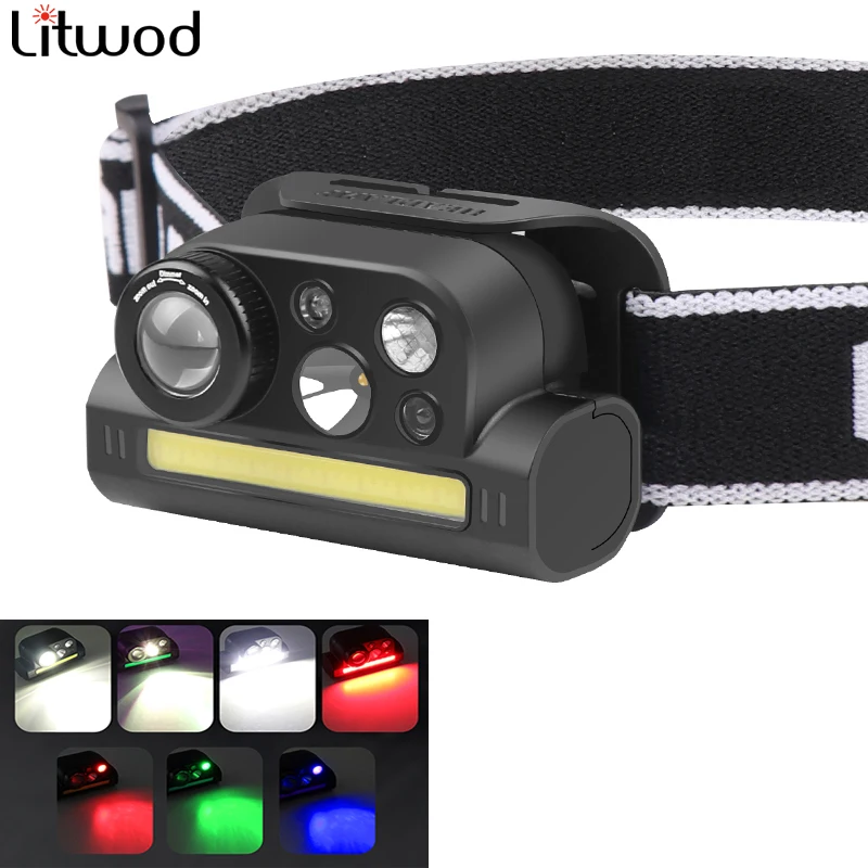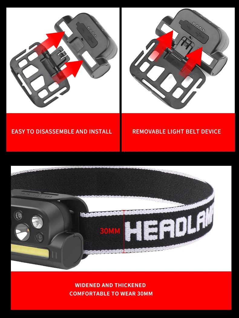 Налобный фонарь с датчиком COB, водонепроницаемый светодиодный свет...