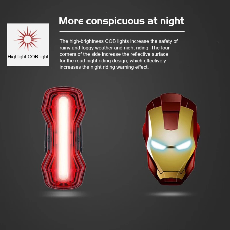 Задний фонарь для велосипеда, 6 светильник МОВ свечения, зарядка через USB