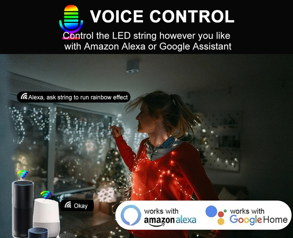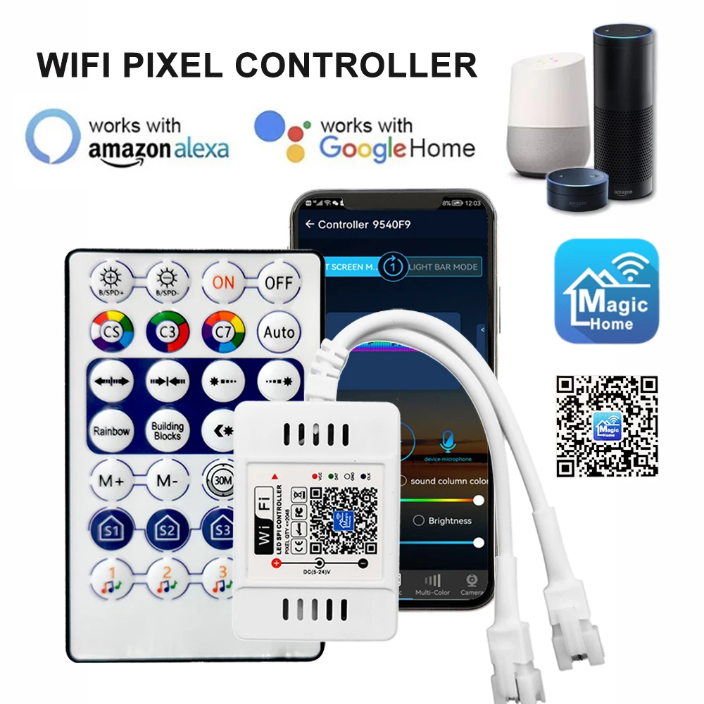 WS2812B WiFi двойной выход Светодиодный контроль Встроенный микрофон Голосовое управление совместимый с AlexaGoogle Home для WS2811 модифицируемая RGB лента