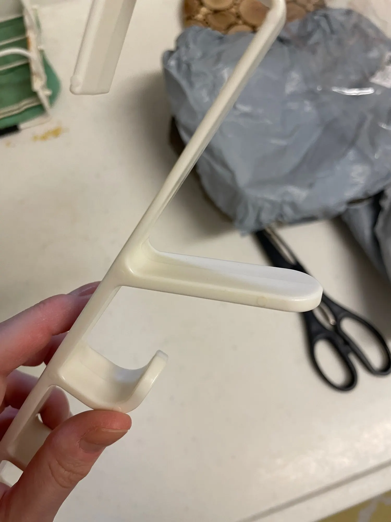 лёгкая пластиковая вешалка, удобная. но на стандартную дверь одевается с трудом. дверь с этой вешалкой потом плотно не закрывается