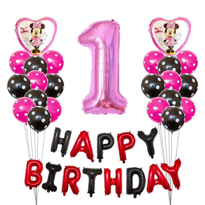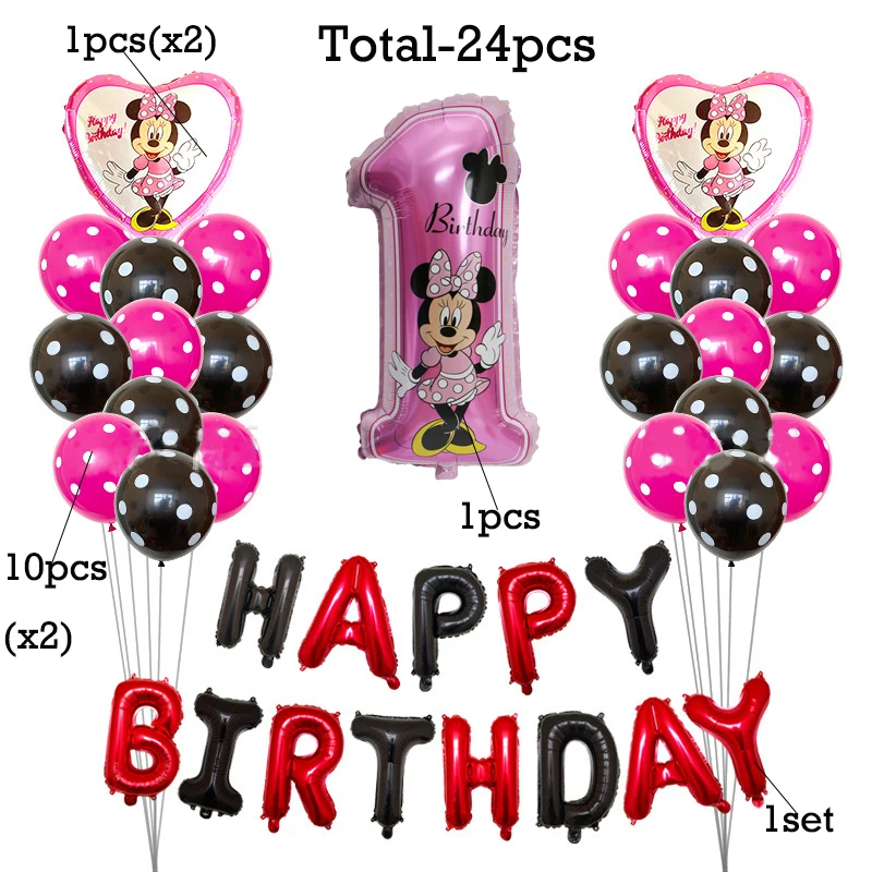 24 шт.лот фольгированные воздушные шары с изображением Минни Маус розового цвета для девочек, украшения для дня рождения, детские игрушки, товары для детского праздника