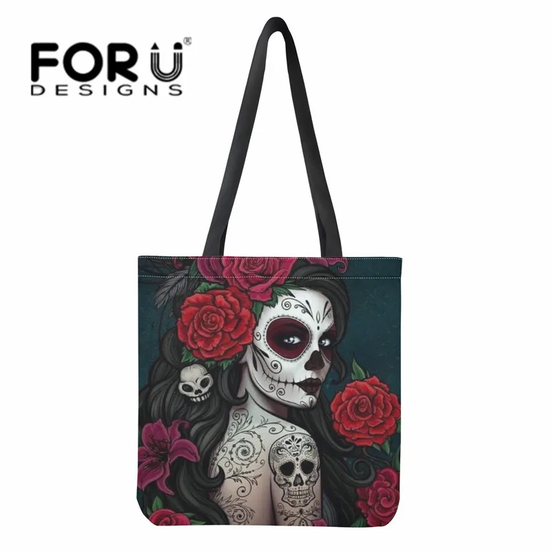 Женская сумка через плечо с принтом черепа FORUDESIGNS, Большая вместительная пляжная Холщовая Сумка-тоут