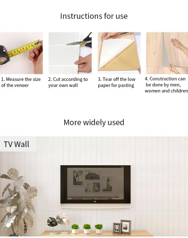 D. Самоклеющиеся пилки и стеновые панели, без затирки, без клея, без специальных инструментов и беспорядка.