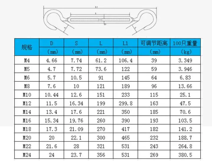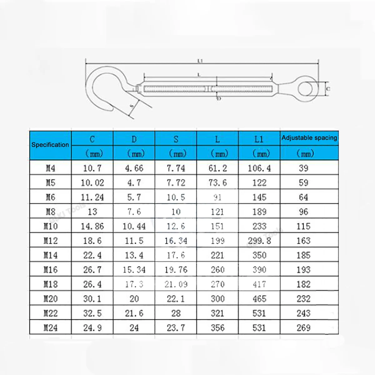 1 шт. 316 двойной глаз из нержавеющей сталидвойной крючоккрючок и глазная стяжка Регулируемый натяжитель проволочного троса M4 - M14 стяжка
