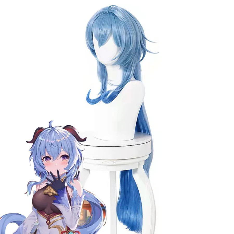 Женский карнавальный костюм Genshin Impact Ganyu, костюм с голубым париком, вечерние костюмы на Хэллоуин для девочек