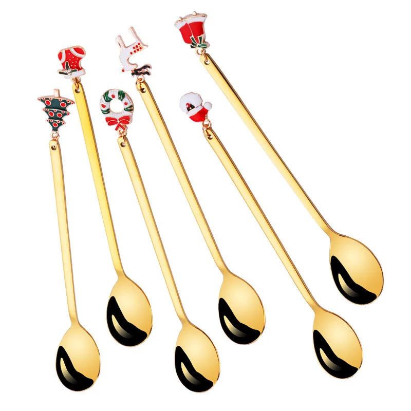 Рождественские украшения, кофейная ложка, нержавеющая ложка, Набор ...