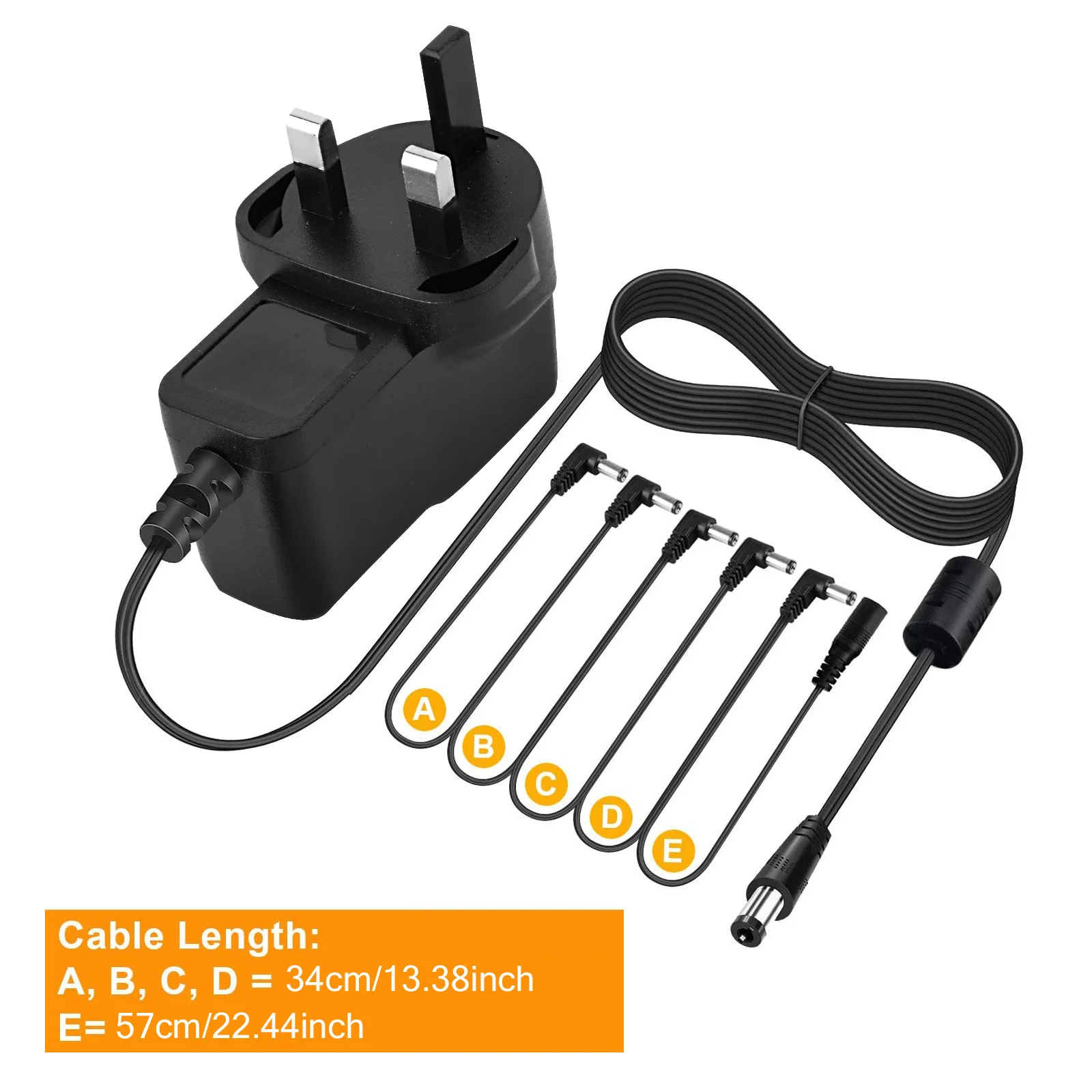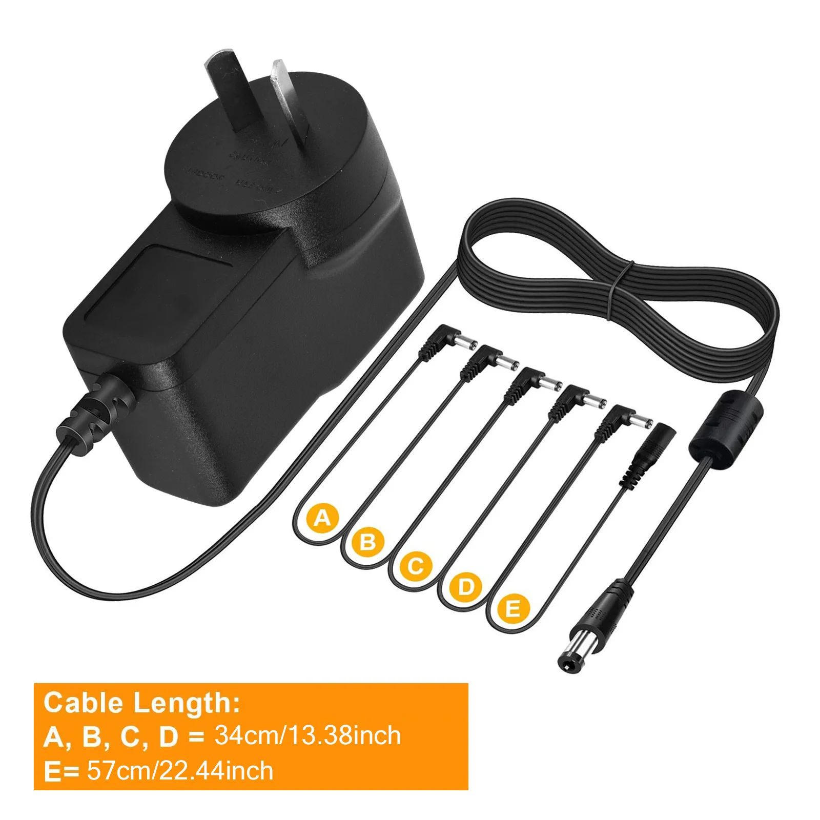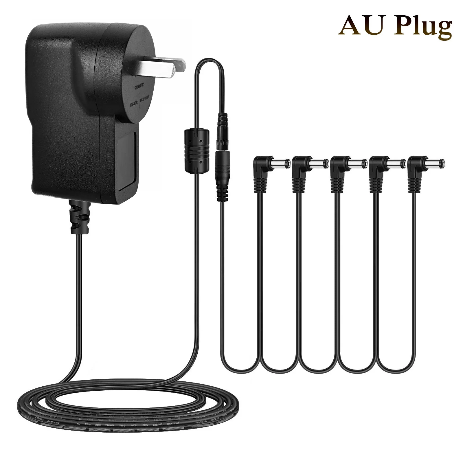 О товаре:1. Для Гитары педали-наш 5 способ педаль источника питания адаптер для использования с электрогитара Гитары несколько педали эффектов. Посылка включает в себя один 9v адаптер питания и 5 способ последовательного соединения шнур.2. Анти-хум сплиттер-высокое качество медный сердечник Маргаритка Цепной кабель со специальным анти-ГУМ. Профессиональная шумоизоляция обеспечивает вам тихую цепь для педалей во время игры.3. 5-5 Канальные кабели питания специально разработаны для гитарных плееров, которые хотят включить несколько педалей одновременно только с одним адаптером или выходом от источника питания.4. Расширенный Шнур: 6,6 футов (2 м) Длина шнура для того, чтобы дать вам достаточно места для установки; С крючками и петлями кабель Модель с закрепленным галстуком вокруг шнура для сбора и хранения5. Широкое использование: совместимость с педалями Boss, Vox Stomplab, JOYO, KLIQ, Wah, Behringer, музыкальными устройствами; Также работает с мини-усилителем Danelectro Electric Guita. Введение:5 способ силовой кабель адаптер для использования с электрогитара несколько педали эффектов. Высококачественная цепочка с ромашками со специальным антигустым покрытием. Кабели питания DC специально разработаны для гитарных плееров, которые хотят включить несколько педалей одновременно только с одним адаптером или одной розеткой от источника питания. Профессиональная шумоизоляция обеспечивает вам тихую цепь для педалей во время игры.Адаптер 9 вольтАдаптер Donner 9 вольт работает с любым устройством, требующим отрицательного наконечника 9 В для минимизации или устранения необходимости замены батарей. Также может использоваться для питания дополнительных педалей с отрицательными эффектами 9 В.Не только для педалейАдаптер 9 вольт предназначен не только для включения педалей, но и для других производителей электроники. Адаптер также может использоваться для отрицательных клавиатур с наконечником питания. Описание:Вход: 100-240 ВВыход элемент питания: 9V, 850mAРасширенный Шнур: 6,6 футов (2 м)Цилиндрический соединитель: 5,5 мм x 2,1 мм, наконечник отрицательный (-) дизайнПосылка включает в себя:1 х адаптер питания 9 В1x5 цепей Daisy