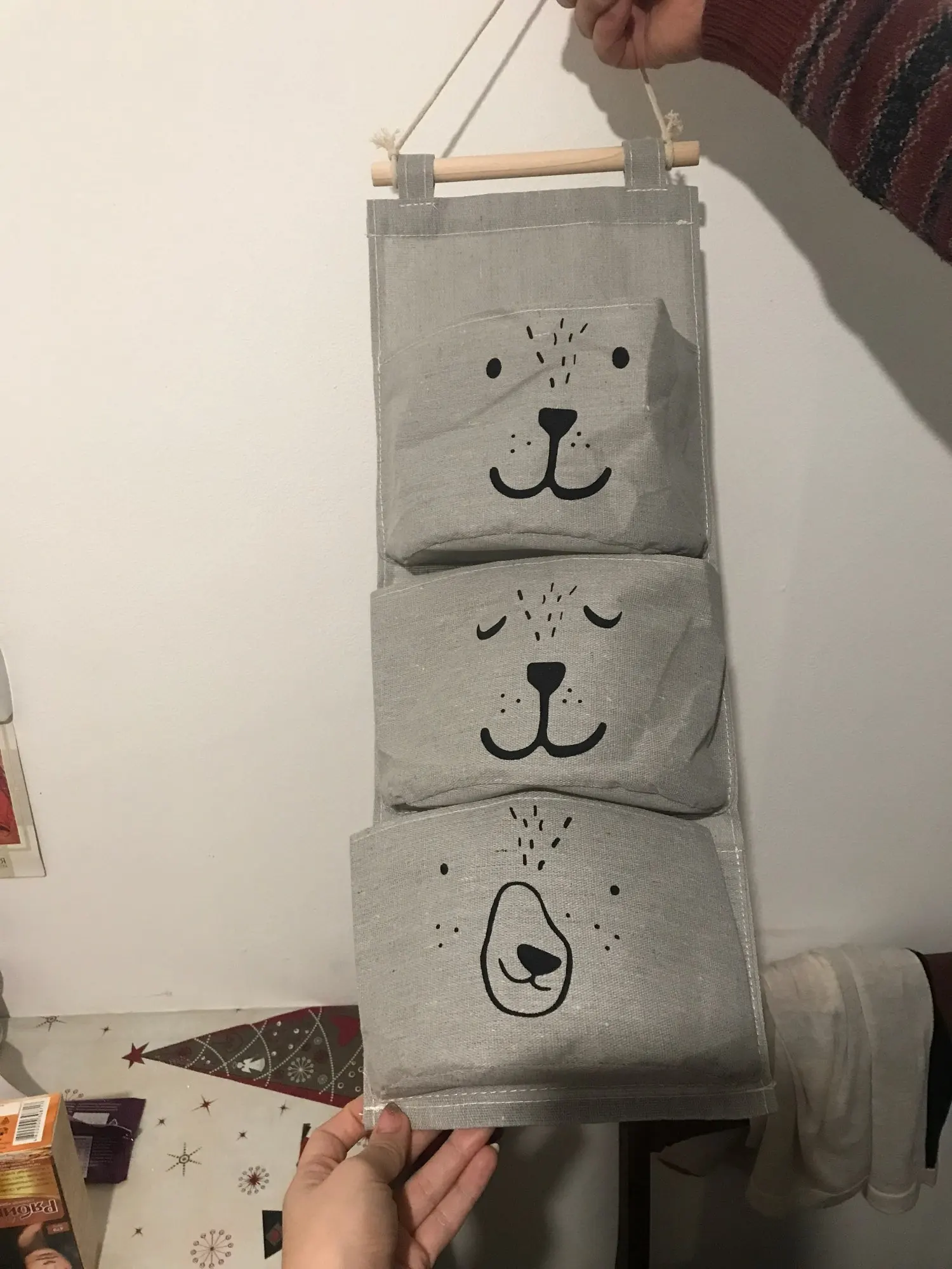 Льняная настенная сумка для хранения, милый органайзер для одежды с 3 карманами, сумка для хранения в шкафу, Детская сумка для дома
