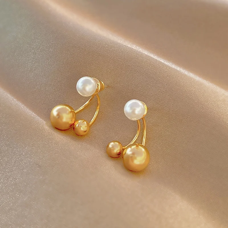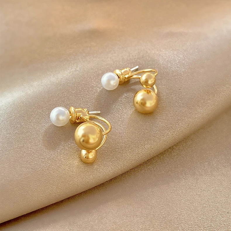 Новинка 2021, классические большие и маленькие металлические серьги с жемчугом для женщин, яркие серьги для вечерние ринки и свадьбы