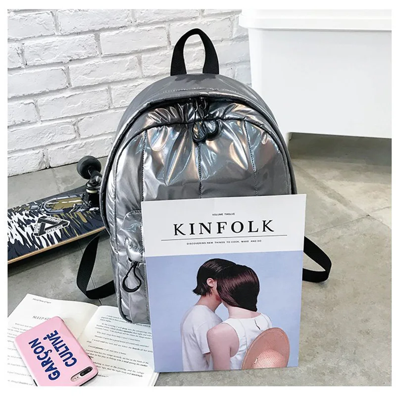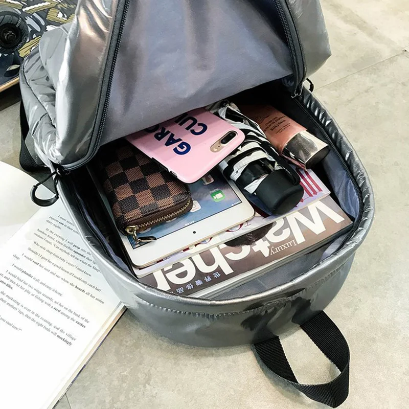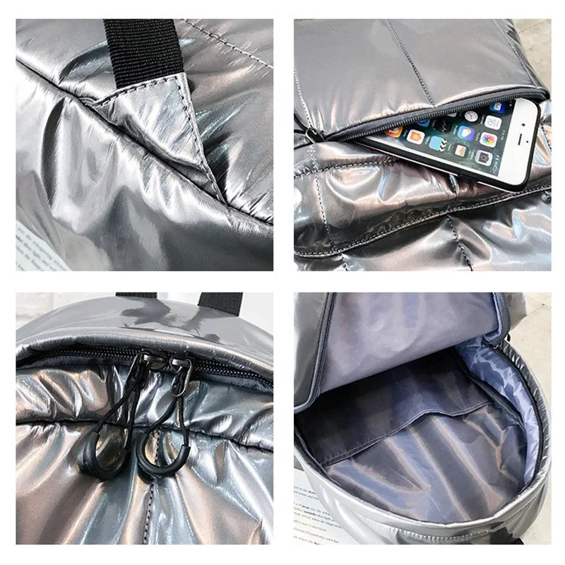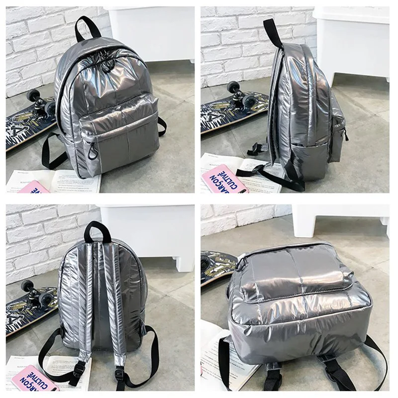 2022 хит, женские рюкзаки, повседневные, хлопковые, повседневные, зимние рюкзаки для девочек Teenger, большие, вместительные, серебристые, дорожные рюкзаки