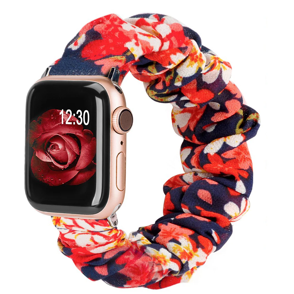 Ремешок для apple watch 40 мм 44 мм iwatch band 42 мм 38 мм Женский эластичный браслет apple watch series 5 4 3 2 38 Материал: хлопок, полиэстер, нержавеющая сталь. Эластичная резинка для часов составляет около 15,3 см, что немного ослабляет, если у вас меньше запястья. Новый дизайн: эта резинка-идеальный аксессуар для ваших часов, брелоков или галстука для волос. Толстый эластичный идеально подходит для вашего размера запястья, также есть различные классические принты для вас на выбор. Совместимые модели: совместимы с Apple Watch 38 мм/40 мм/42 мм/44 мм. Персонализируйте ваши часы с помощью этого утонченного запасного браслета. (Обратите внимание: нет часов!) Простая установка: эластичный ремешок Apple watch разработан с двойными кнопками и застежкой с обеих сторон. Он поставляется с рафинированными стальными соединителями, легко снимать и устанавливать, которые надежно фиксируют ваши часы. Посылка содержит: 1 ремешок для часов (не включает часы apple)