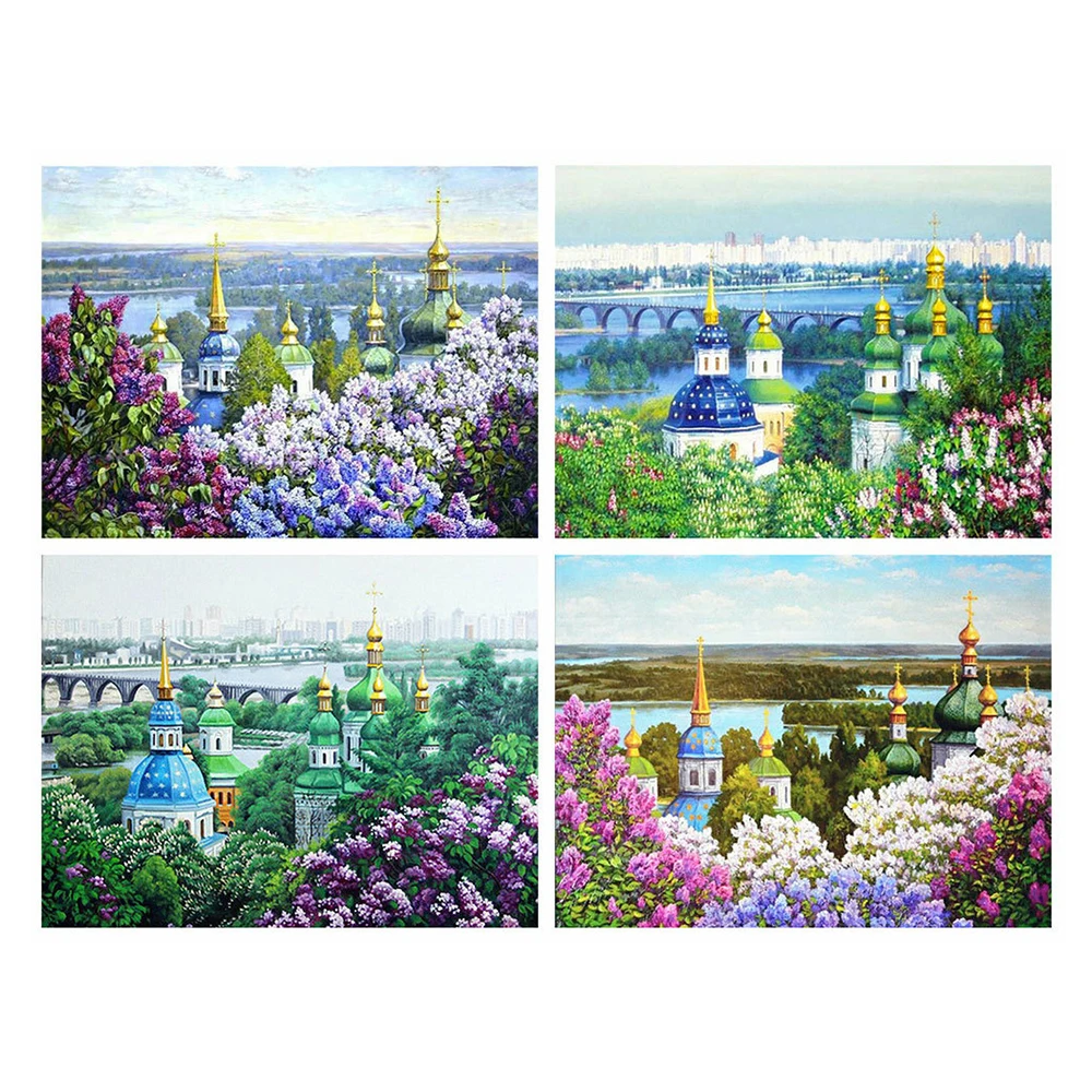Картина на холсте, 5d, алмазная картина, город, сделай сам, мозаика, пейзаж, полный квадрат, алмазная вышивка, крестиком, церковь, ручная работа, искусство, подарок