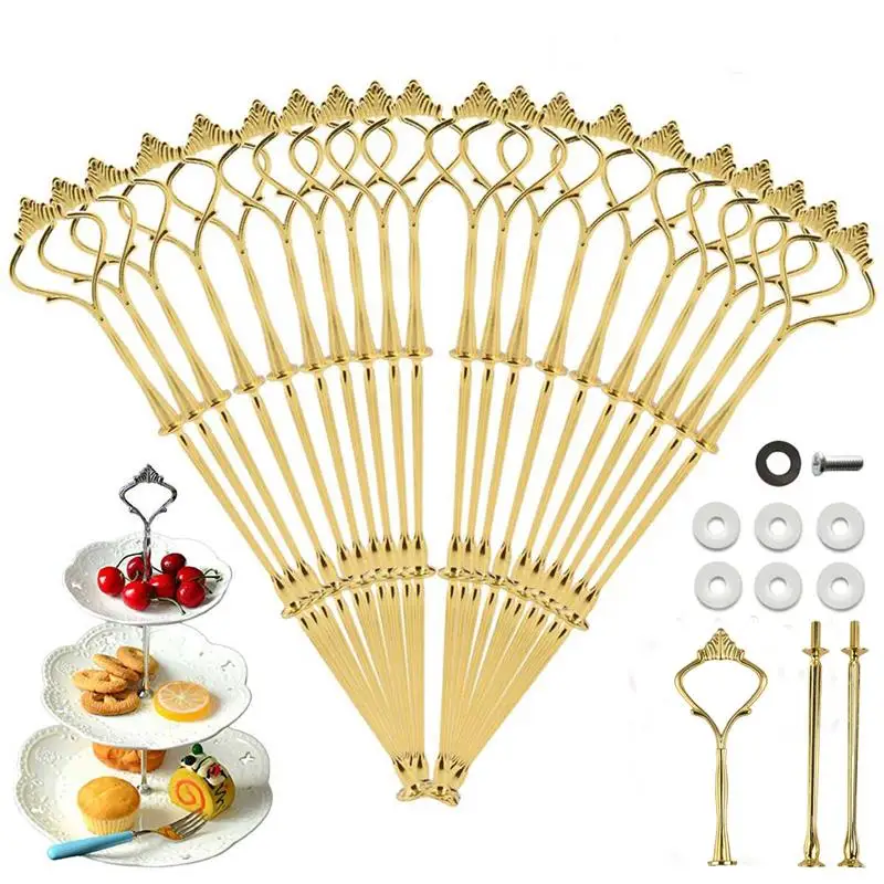 Особенности: 1, многоразовые, прочные, практичные. 2, можно установить 2 яруса или 3 яруса в соответствии с вашими потребностями. 3, подходит для деликатного Китая, ювелирных стендов, изысканных свадебных стендов. 4, может быть легко собран и демонтирован, когда не используется. 5. Отлично подходит для конфет, десертов, хлеба, фруктов, конфет и т. д. 6. Пластина не входит в комплект