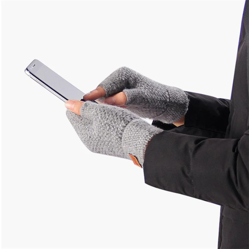 Перчатки с открытыми пальцами для женщин и мужчин, вязаные плотные ...