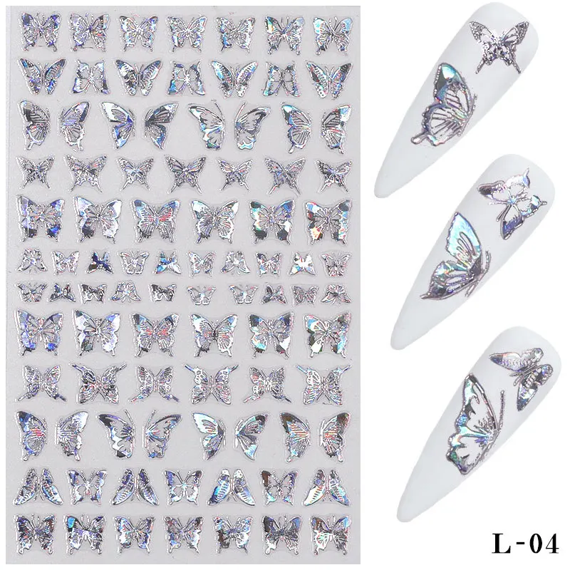 Новые голографические 3D наклейки для ногтей с лазерной бабочкой, наклейки для ногтей, наклейки для ногтей, лазерные наклейки, декоративные DIY маникюр