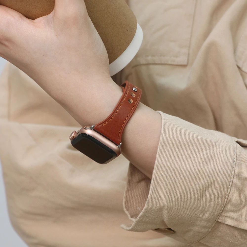Ремешок кожаный женский для Apple Watch 7 6 SE, тонкий браслет для ...