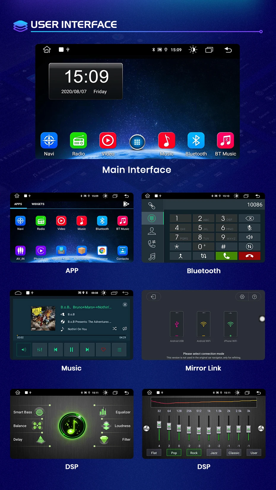 screen display9 inch 2.5D screen, 1024*600 resolution