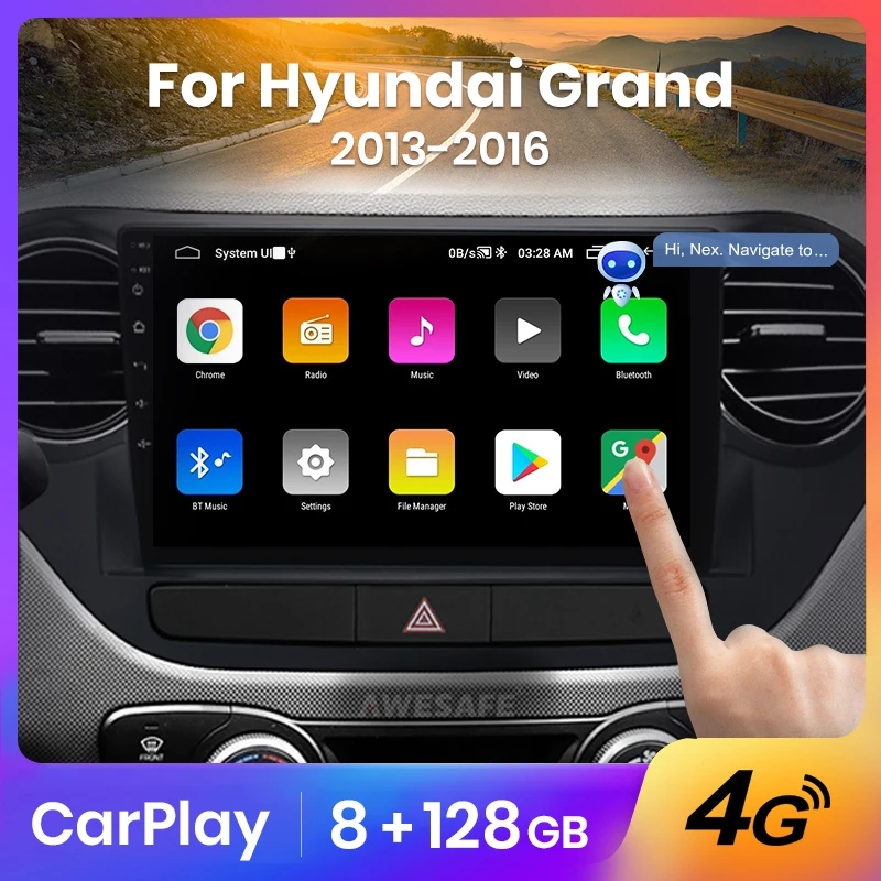Автомагнитола AWESAFE с голосовым ИИ-интерфейсом, мультимедийный плеер на Android для Hyundai Grand I10 2013-2016 Carplay, 4G, 2din, GPS, Авторадио