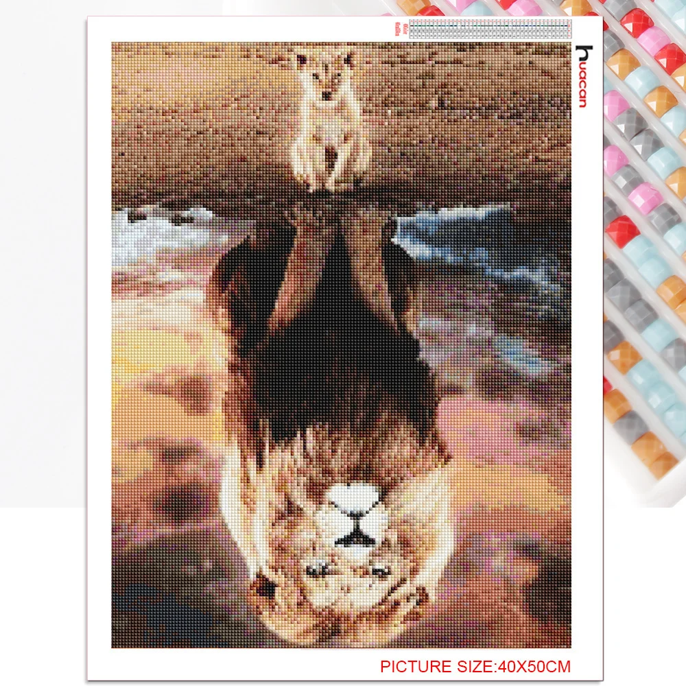 Алмазная 5D картина Huacan, мозаика с Львом, кошкой, Набор для вышивки крестиком, животные, настенное искусство